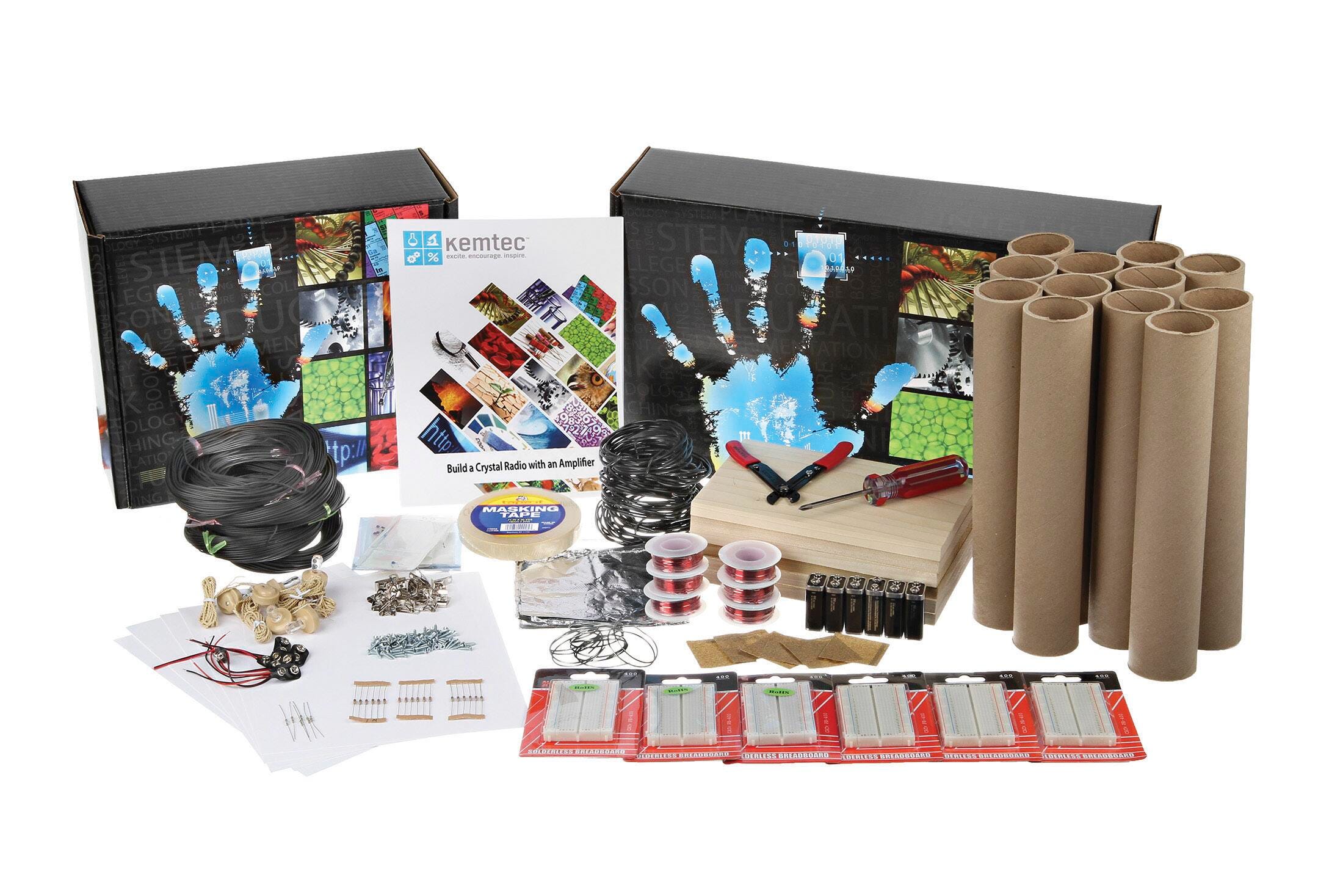 Kemtec Build Old Fashioned Radio Classroom Pack Kit helps to explore wavelength, current, voltage, frequency and amplitude while immersed in hands-on experimentation. As students build their own old fashioned Crystal Radios, they explore the effects of design variations. It includes multi-meters students collect real data for analyzing experimental results they generate from their projects. Great for introducing guided inquiry-based learning. It is includes instructor's manual, student guides, two sensitive multi-meters capable of measuring down to 5 uA/100 mV and enough materials to build six radios.