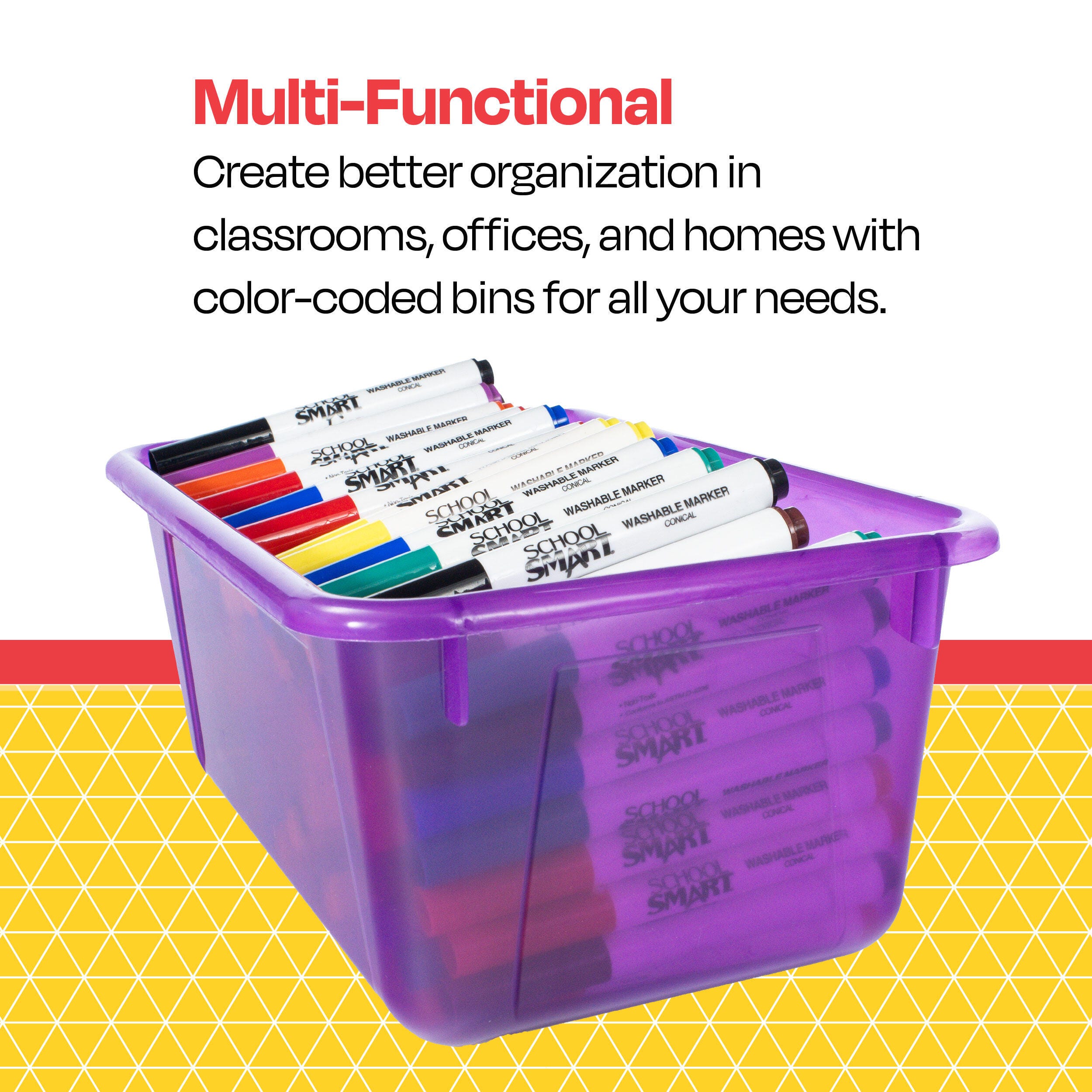 Organize with School Smart; this translucent plastic storage bin is tinted in a bright color but is clear enough to easily identify contents from afar. Our plastic cubby bins are easy to use and hold. Use them on their own or with cubby shelves. Whether you’re teaching STEM or STEAM, the bright colors help with classroom organization, and your imagination sets the limit. Use the plastic storage containers for elementary schools, kindergarten, preschool, childcare centers, and playrooms. The storage box works well as an arts and crafts container, toy organizer, book holder, and more.