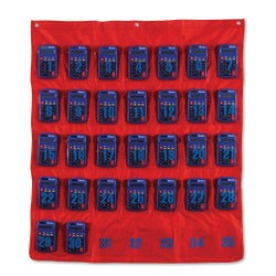 Learning Resources Calculator Storage Chart keeps calculators conveniently organized and ready for student use. Design is made of durable nylon with clear/transparent numbered plastic pockets attached to the front. Three metal grommets along the top allow for easy hanging. Chart measures 28-1/2 x 33-1/2 inches. Pockets each measure 3-3/4 x 4 inches.Calculators sold separately.Features