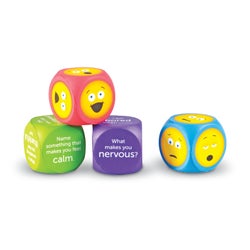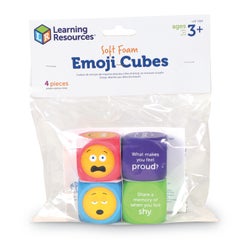 Invite children to talk about their emotions with written prompts and familiar emoji faces! Roll a cube and name the emotion displayed, or talk and write about how you are feeling. These cubes offer plenty of opportunities for fundamental social learning - have kids roll the question cubes and answer the resulting prompt, or let them roll the emoji cubes and discuss the feelings and emotions behind the faces that come up. The Soft Foam Emoji Cubes are also great for language and vocabulary lessons and can help kids expand the ways in which they think about and communicate their inner feelings. Recommended for ages 3 and up.Features