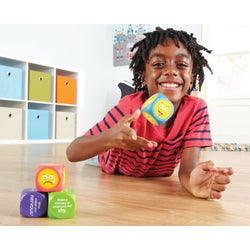 - Soft foam cubes help kids relate words to feelings with depictions of common emotions