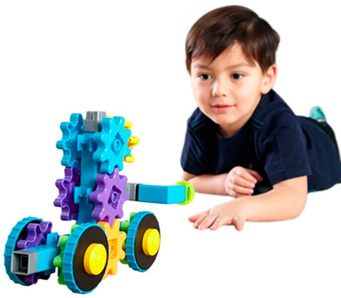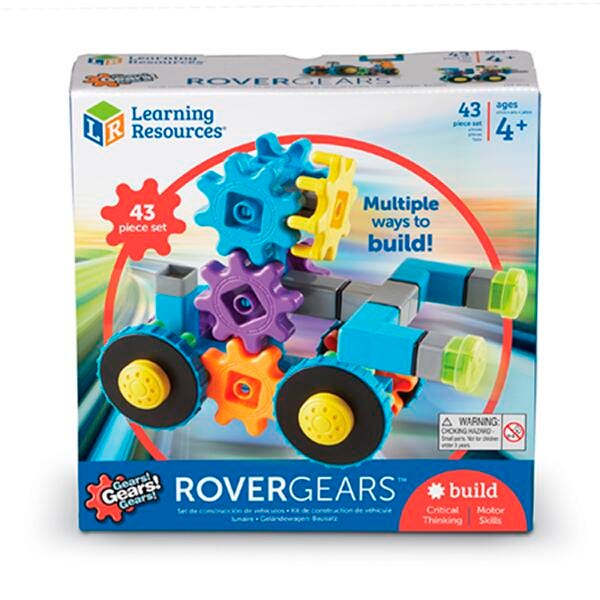 Little engineers can create their own rovers, choppers, or crazy rolling contraptions with the Gears! Gears! Gears! RoverGears building kit. Open-ended building allows for almost endless creations. Children snap the gear pieces together and send their rover rolling. It’s an engaging way to help children build STEM skills, motor skills, and practice their critical thinking. Works with all Gears! sets. Built car measures 8-1/2 L x 7 H inches. For ages 4 years and up.