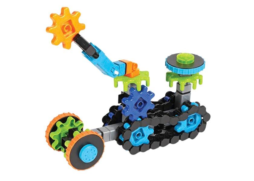 The Gears! Gears! Gears!® TreadMobiles set from Learning Resources lets children engineer their own twisting and turning creations. This 101-piece STEM building set has colorful moving gears and an adds extra layer of fun with attachable rubber treads. Builders can create tanks, conveyor belts, and more! Beginners can follow along with included builds, or design their own machines as they gain experience. Compatible with all Gears! sets.