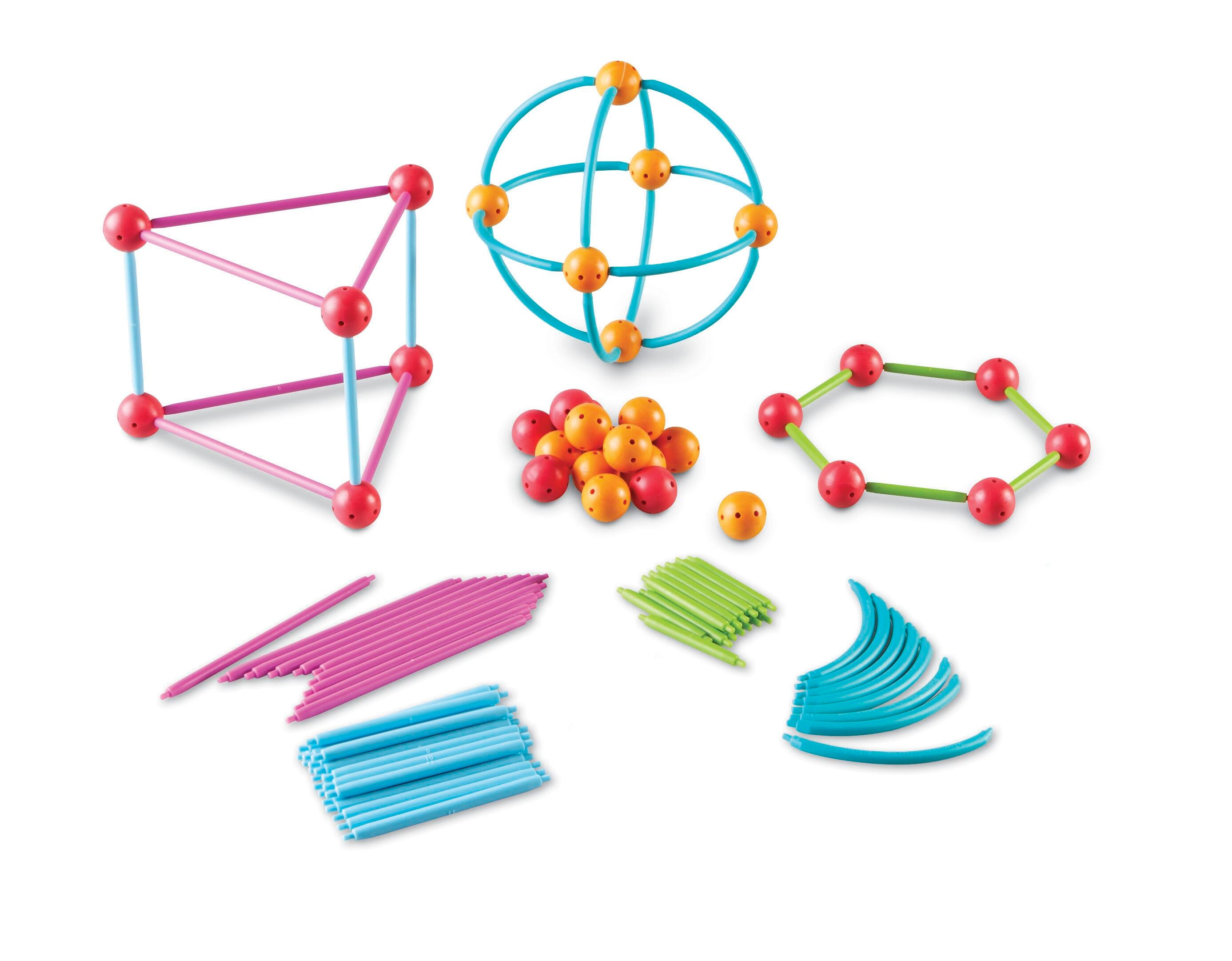 Combine sticks in 3 sizes, along with curves for making circles and cylinders, with 2 different colors of connecters to build 2-D shapes. Then, combine them to make new 2-D shapes, and even 3-D shapes! Child-friendly set features durable sticks, curves, and connectors. Ages 5 and up.