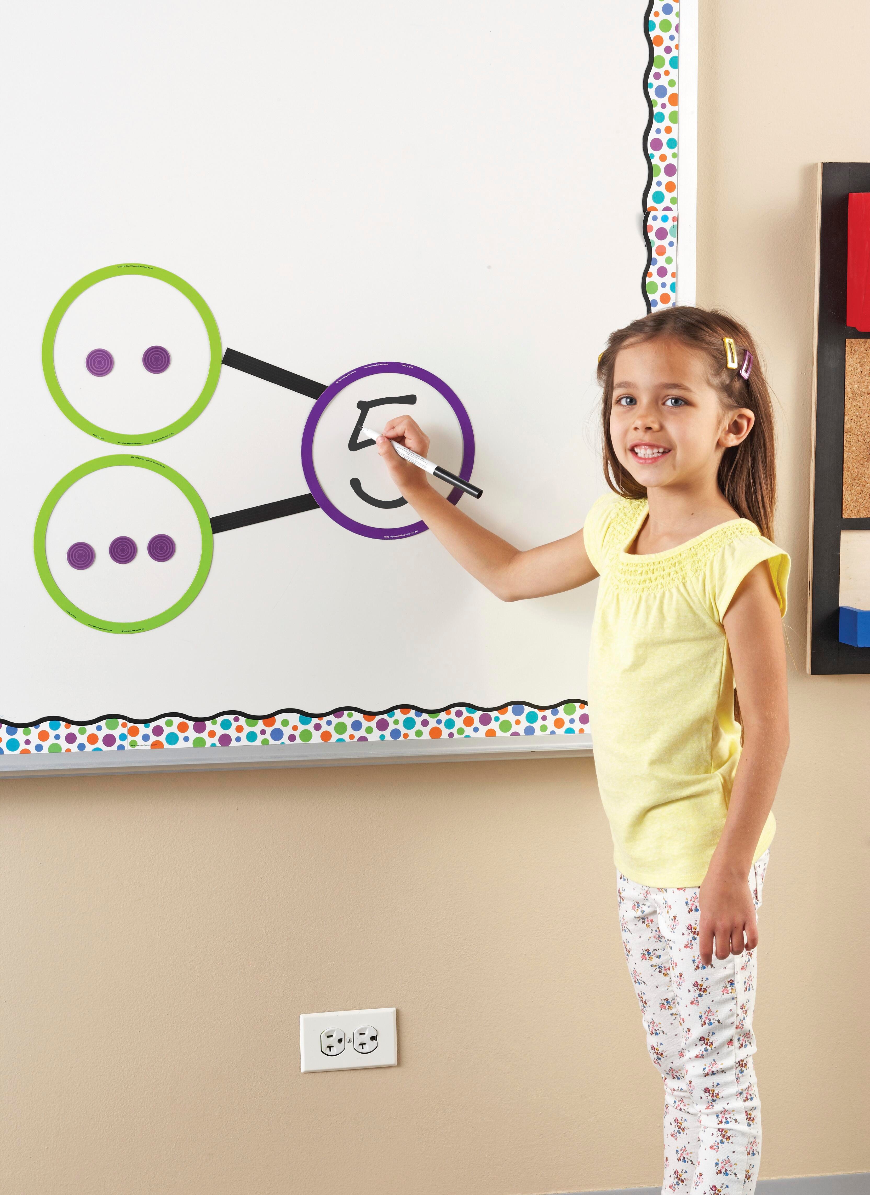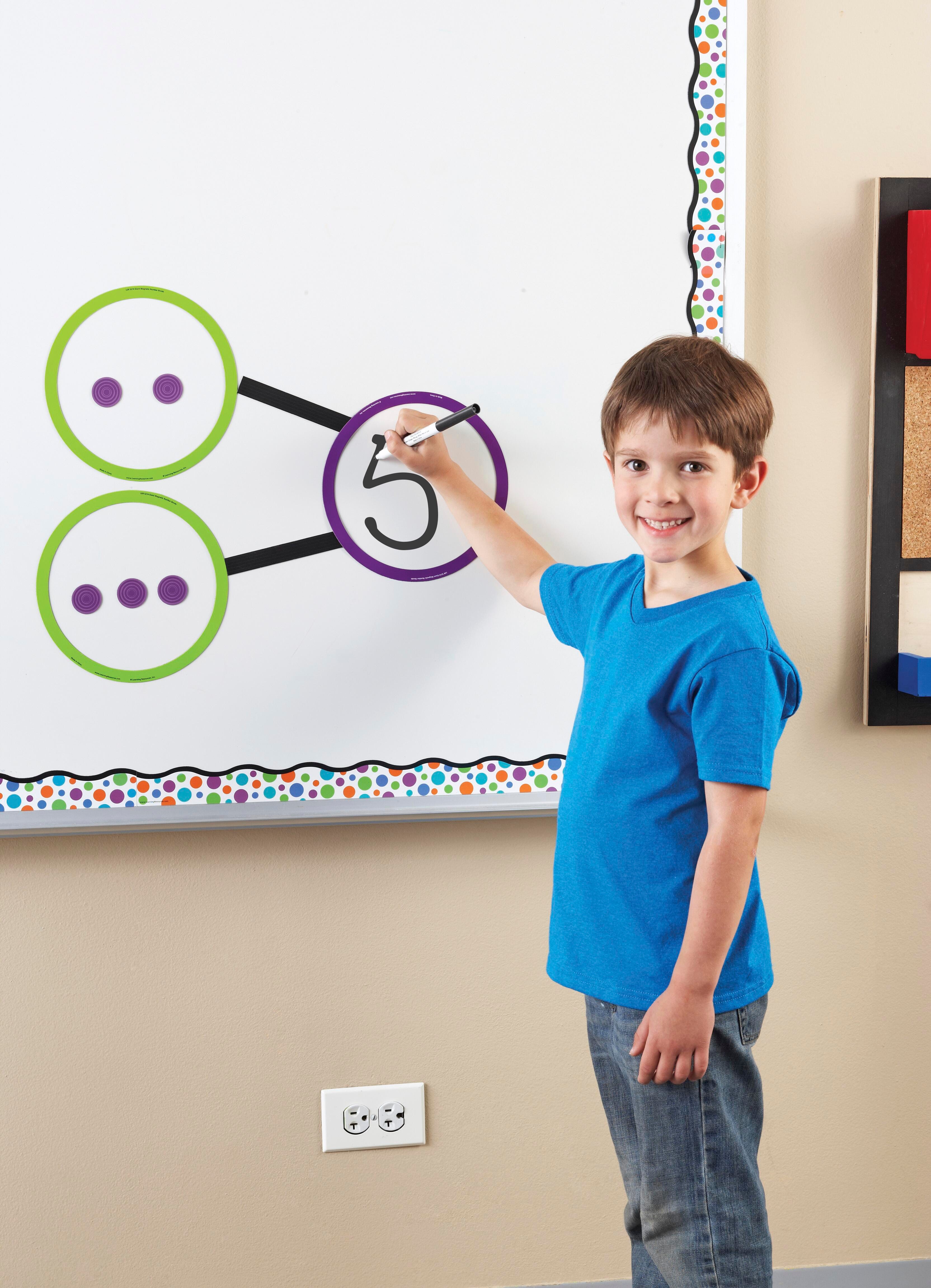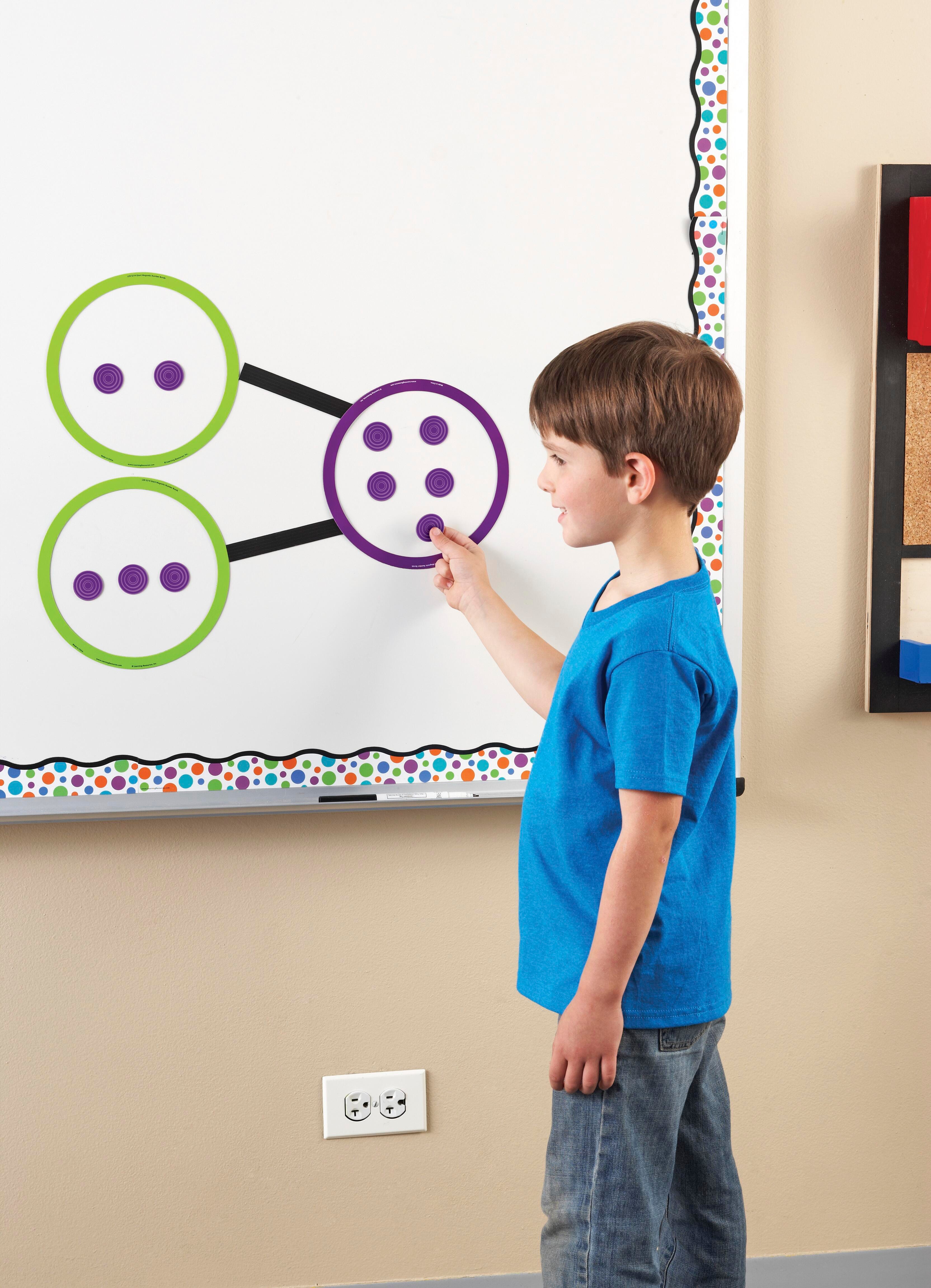 Clearly visualize and demonstrate number relationships for young learners in the classroom! This versatile set of magnets is sized for easy handling and can be seen from across the room.