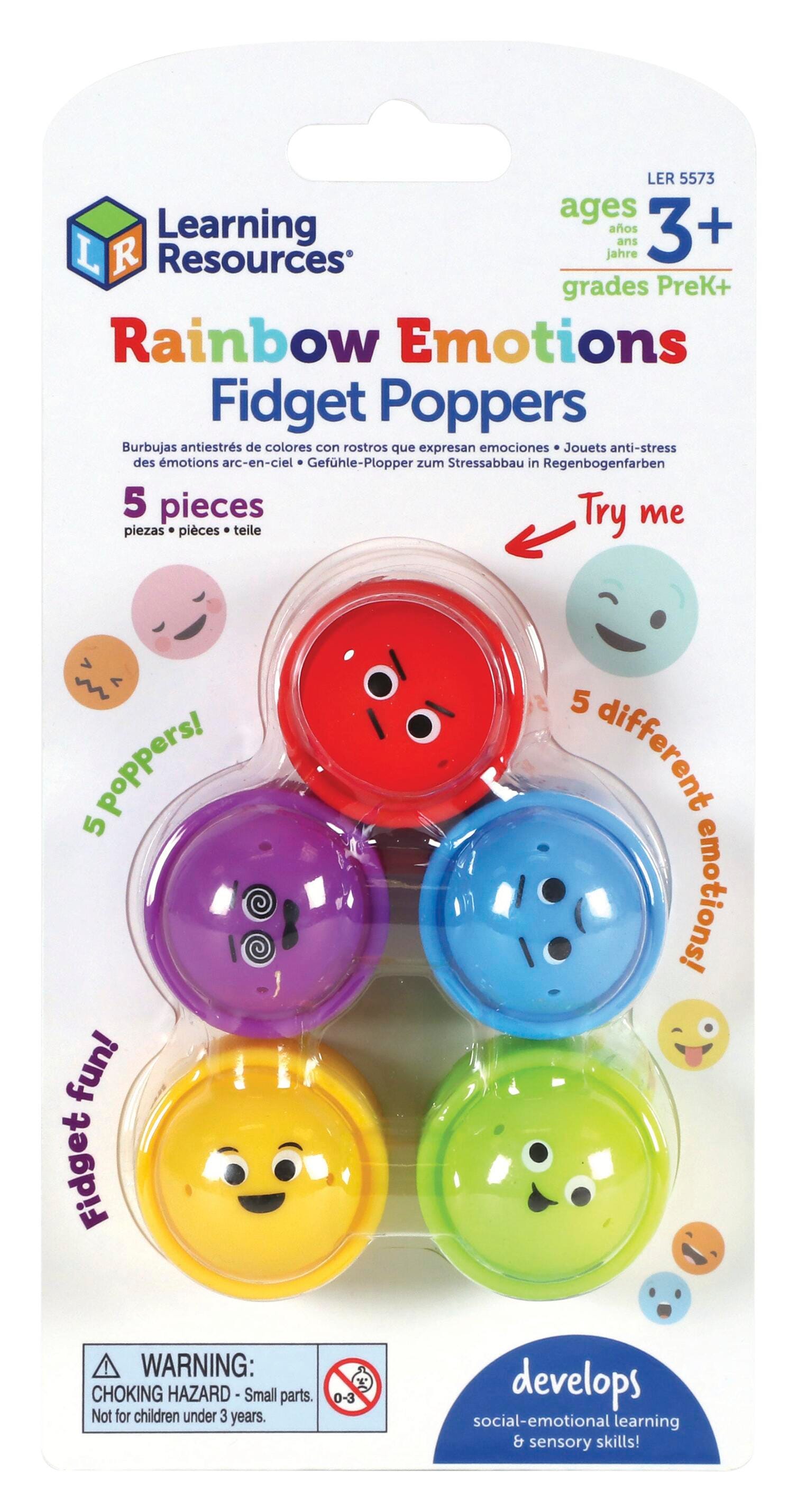 Learning Resources Rainbow Emotion Fidget Poppers, 5 Pieces