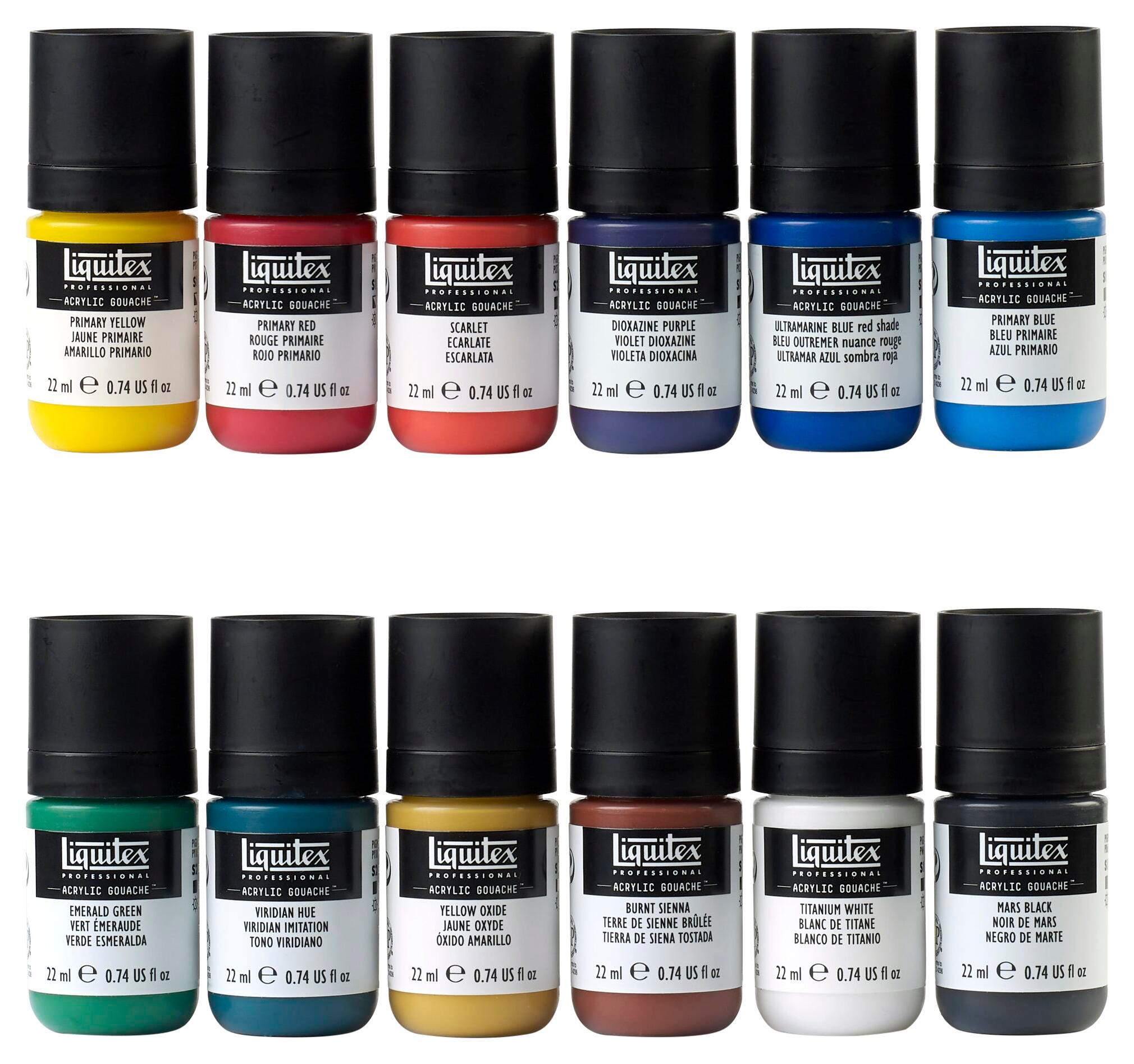 Liquitex Acrylic Gouaches, 37/50 Ounces, Assorted Essential Colors, Set of 12