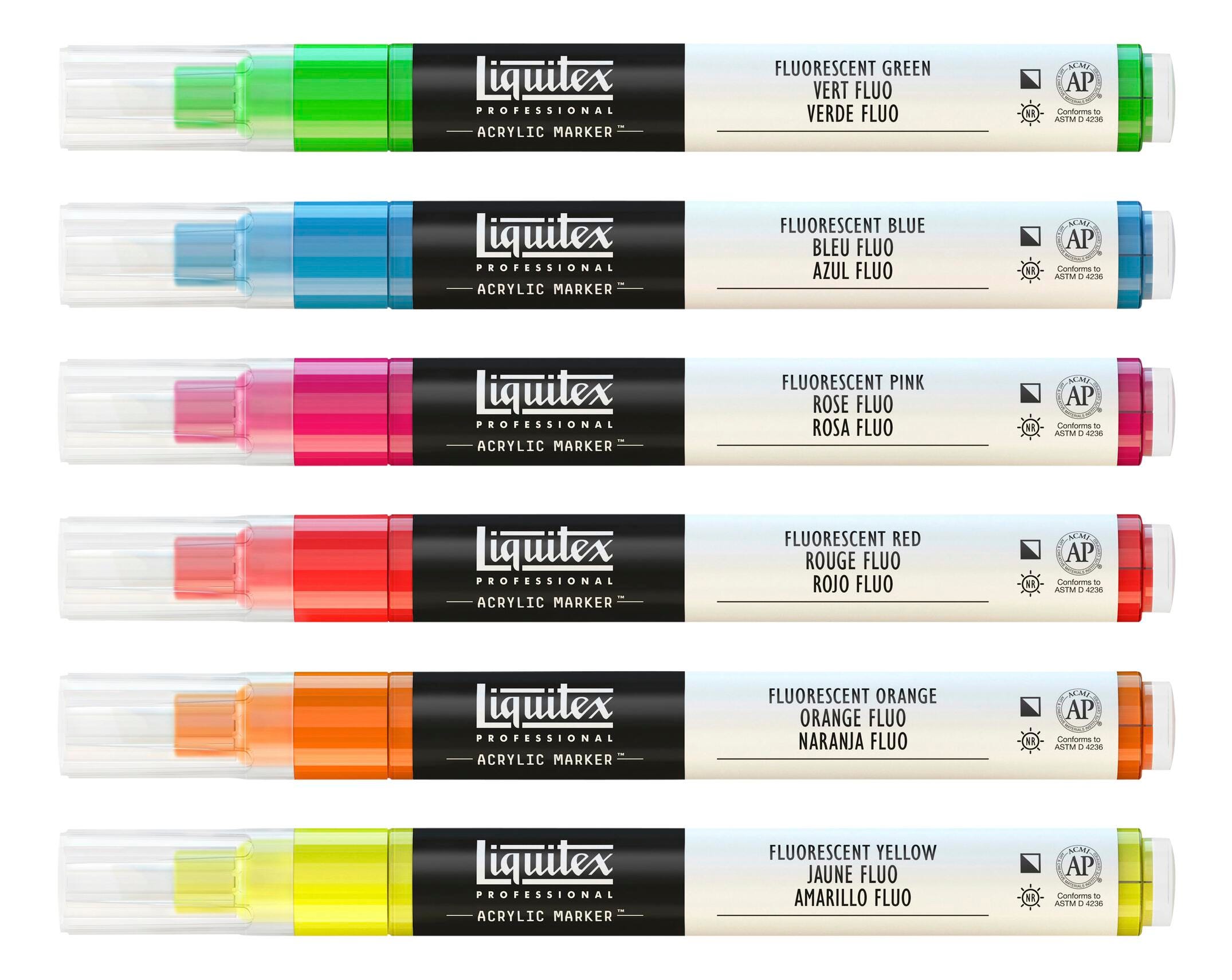 • Liquitex Professional Fine Tip Paint Markers, Assorted Fluorescent Colors, Set of 6