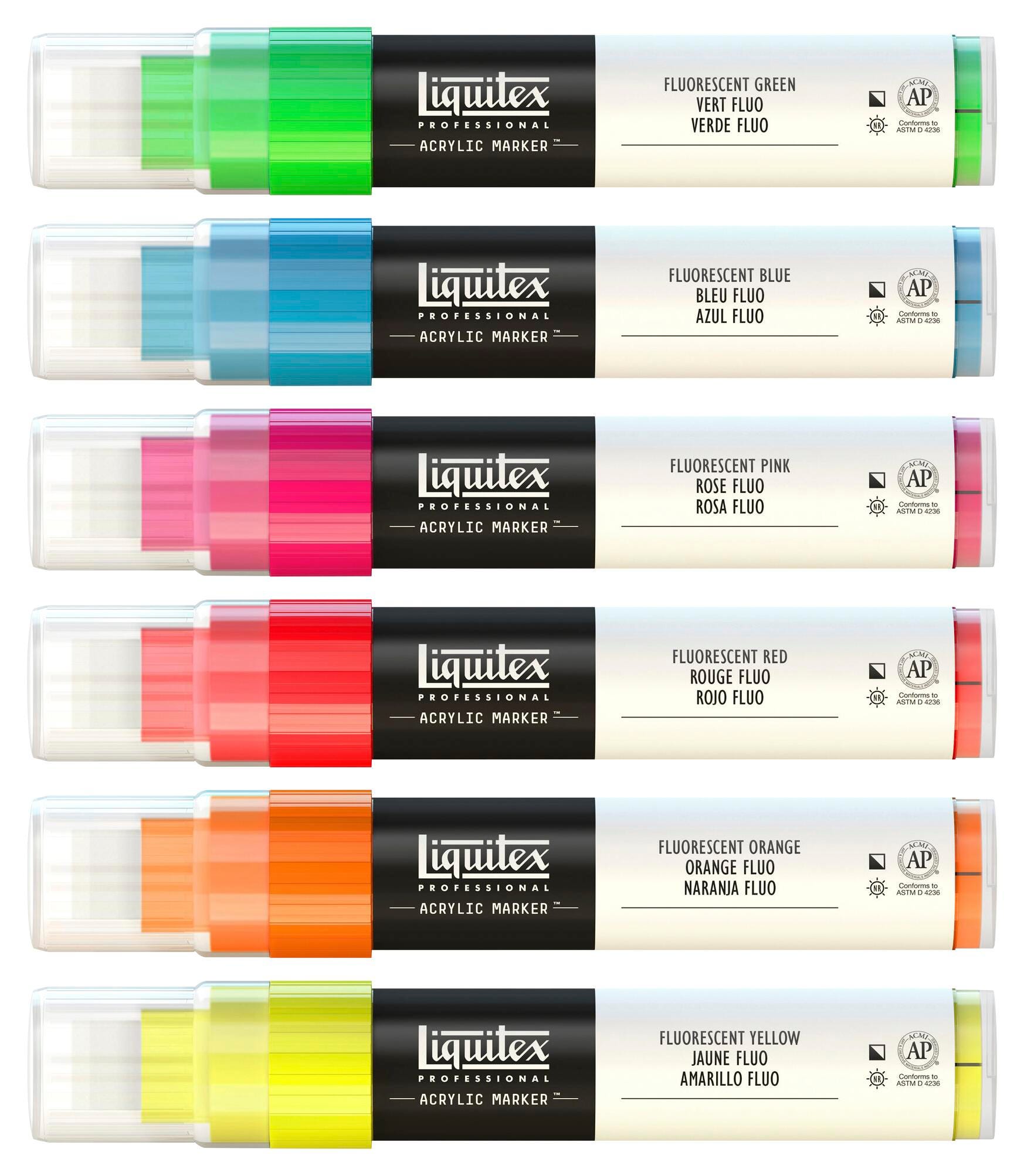 Liquitex Professional Wide Tip Paint Markers, Assorted Fluorescent Colors, Set of 6