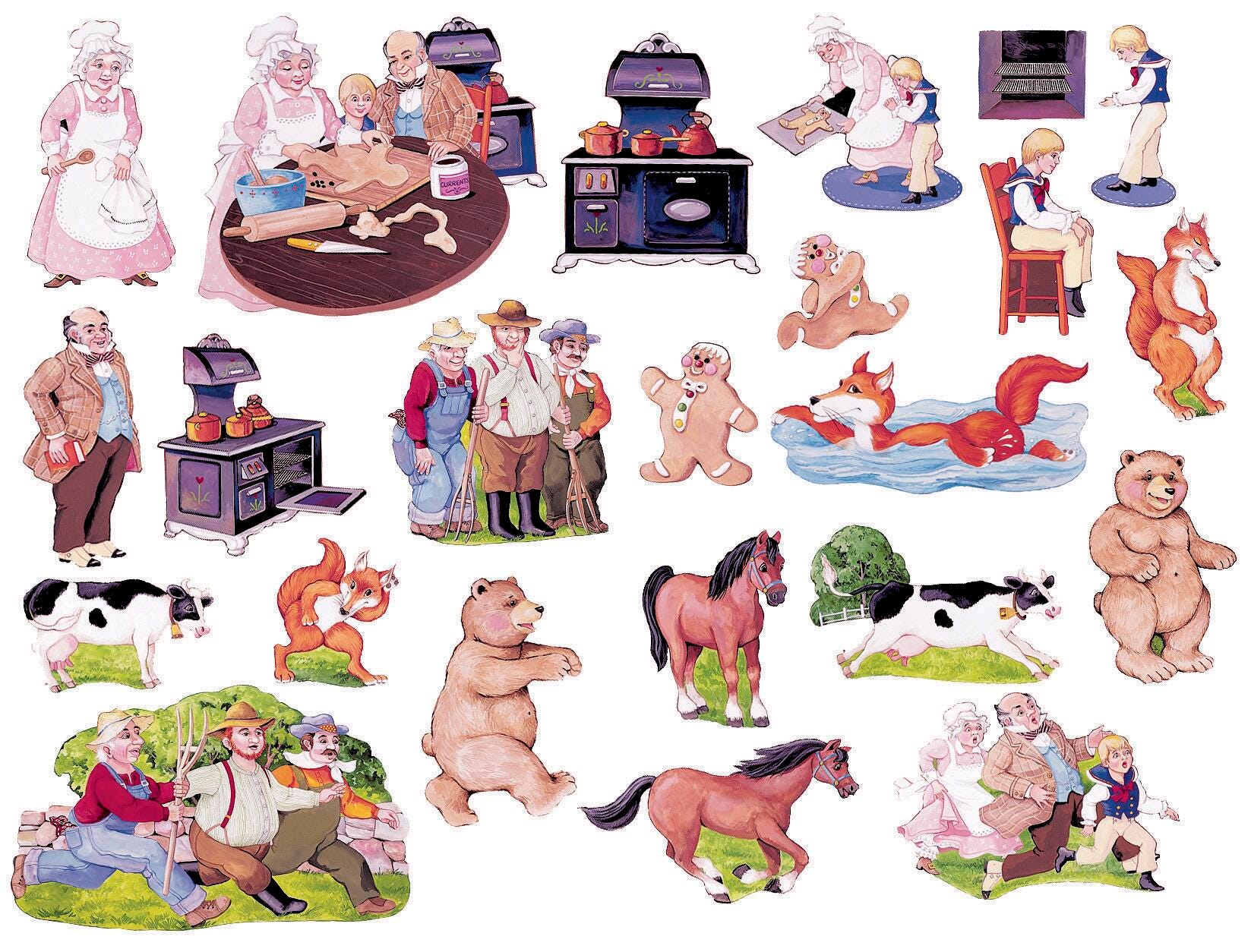 Little Folk Visuals Felt and Board Sets contain pieces ranging from 11 to 23 for each set. They include sets for Goldilocks and the Three Bears, Little Red Hen, The Three Little Pigs, Red Riding Hood, and Gingerbread Boy.