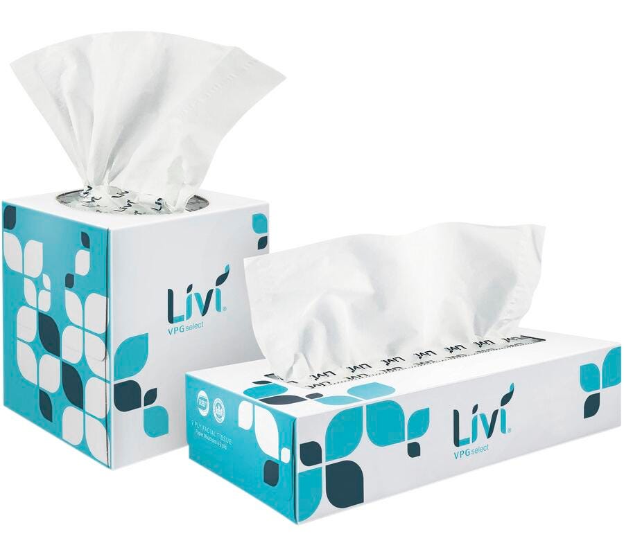 Livi Solaris Paper 2-ply Facial Tissue, 100 Tissues Per Box, Pack of 30 Boxes