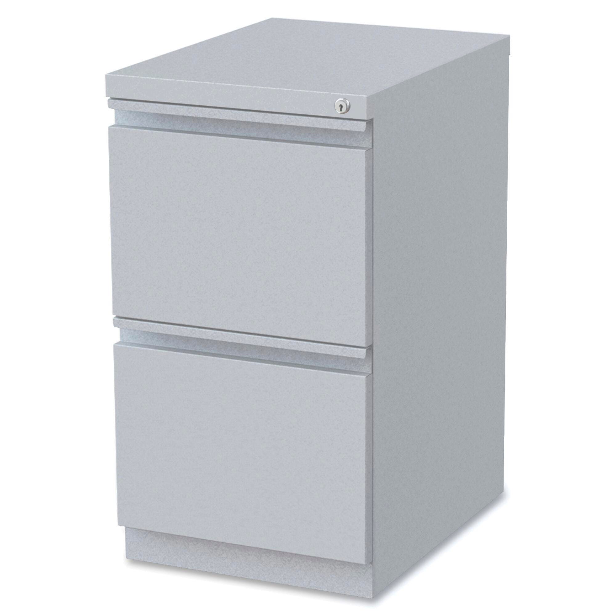 Lorell 20 inch mobile pedestal file features two high-sided drawers with full extension for great access and plenty of filing space. Steel ball-bearing, drawer suspension delivers smooth drawer opening and closing. Factory-installed, core-removable lock keeps your letter-size files secure. Drawer pull extends across the entire, recessed drawer front for easy access. Casters are hidden from view and move the pedestal easily when necessary. Steel pedestal offers a 19-7/8 inch depth to slide easily into your cubicle or other office configuration. Mobile pedestal file meets or exceeds applicable ANSI/BIFMA standards.