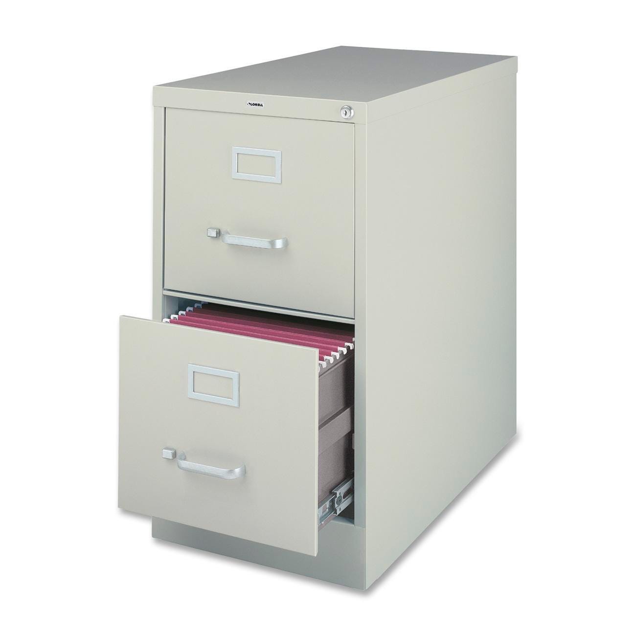 Lorell Commercial Grade Putty Vertical Files feature high-sided drawers that accommodate hanging file folders without additional accessories. Slide suspension allows maximum drawer extension. Steel ball bearings provide smooth, quiet drawer performance. Even fully loaded, these drawers open with ease. Adjustable wire followers keep files upright. 26-1/2 inch deep vertical file also features a core-removable lock for security, aluminum label holders for easy referencing, convenient pull handles and heavy-gauge steel construction with recycled content. Vertical file meets or exceeds ANSI/BIFMA industry standards.
