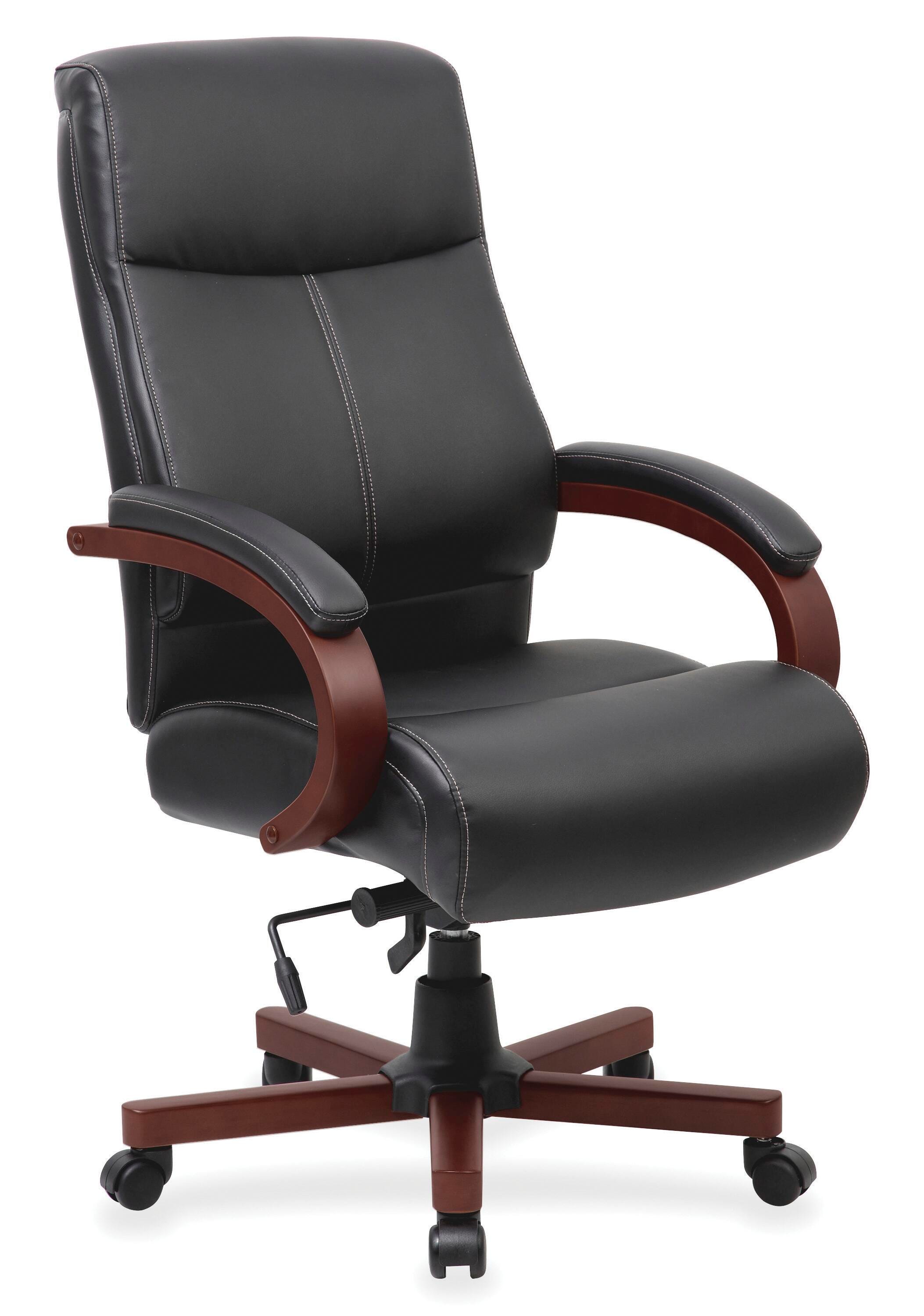 Lorell Executive High Back Leather Chair, 27 x 31 x 47 Inches, Black, Cherry