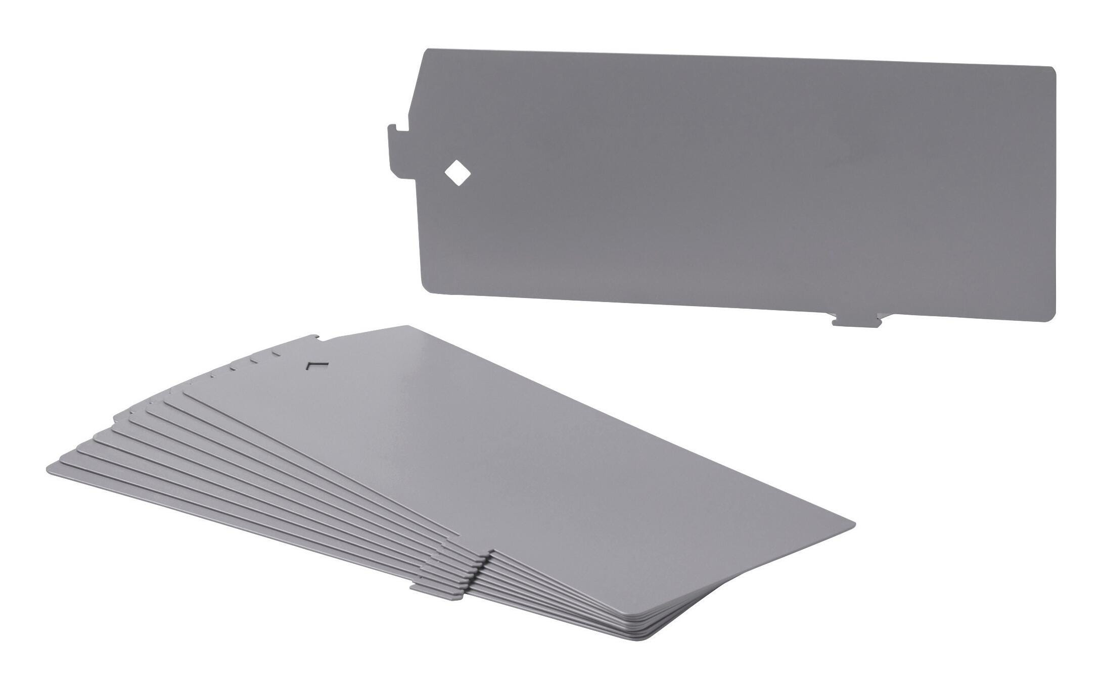 Lorell Divider Kit includes 10 dividers that are perfect to hold lateral files, freestanding files or binders upright. Divider that allows you to keep the exact number of files in your file drawer easily snaps onto drawers. Platinum Gray. Sold as 10 per box.