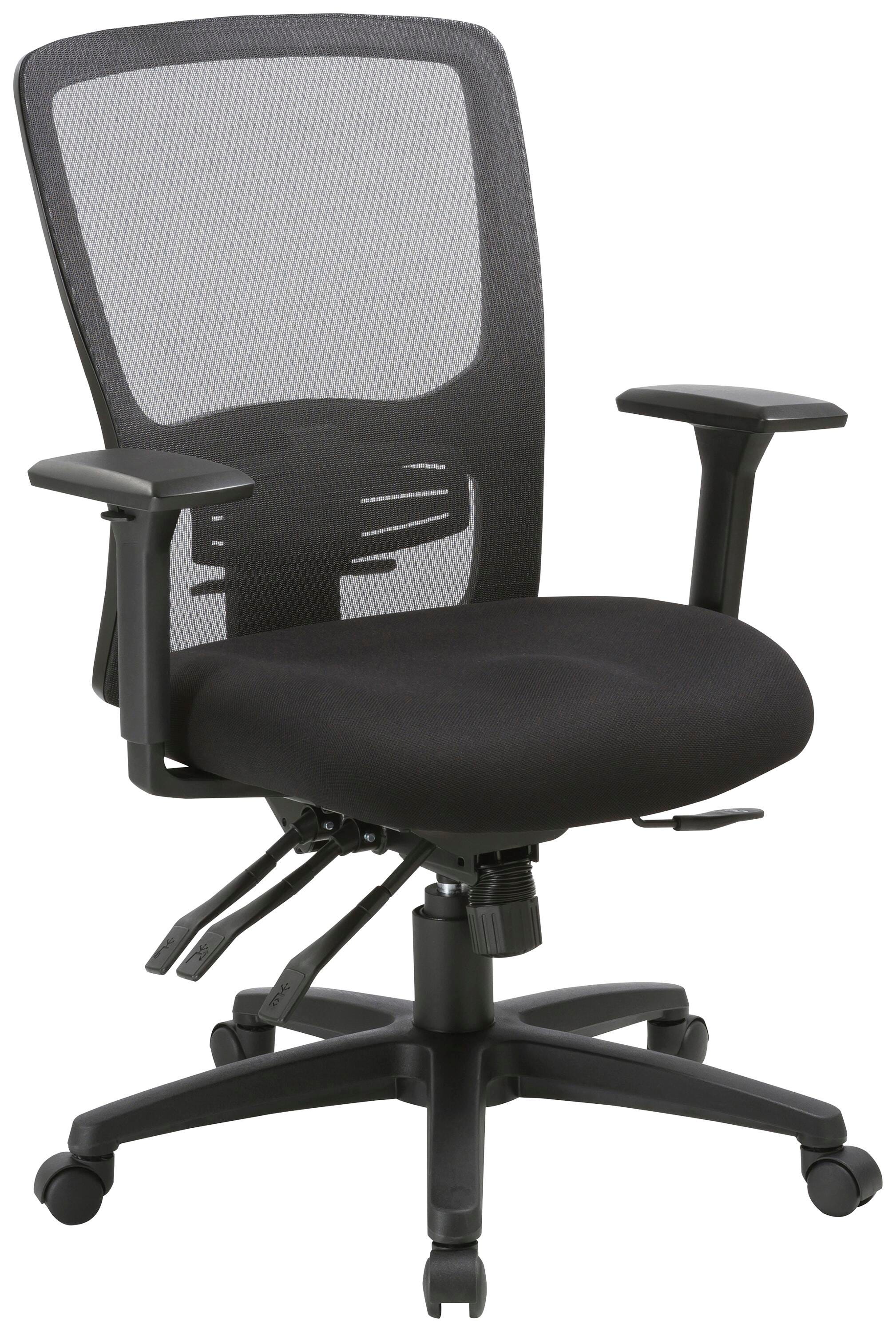 High-back chair features a mesh back that allows air to flow freely when you're seated to help you stay cool throughout the day. Adjustable lumbar support offers ergonomic support for your lower back to help prevent strain through extended seating. Seat-height adjustment with tilt tension allows a variety of users to sit comfortably at their desk. 360-degree swivel allows you to effortlessly rotate the chair for added convenience. Chair also includes a seat-depth adjustment, seat slider and seat/back angle adjustment.