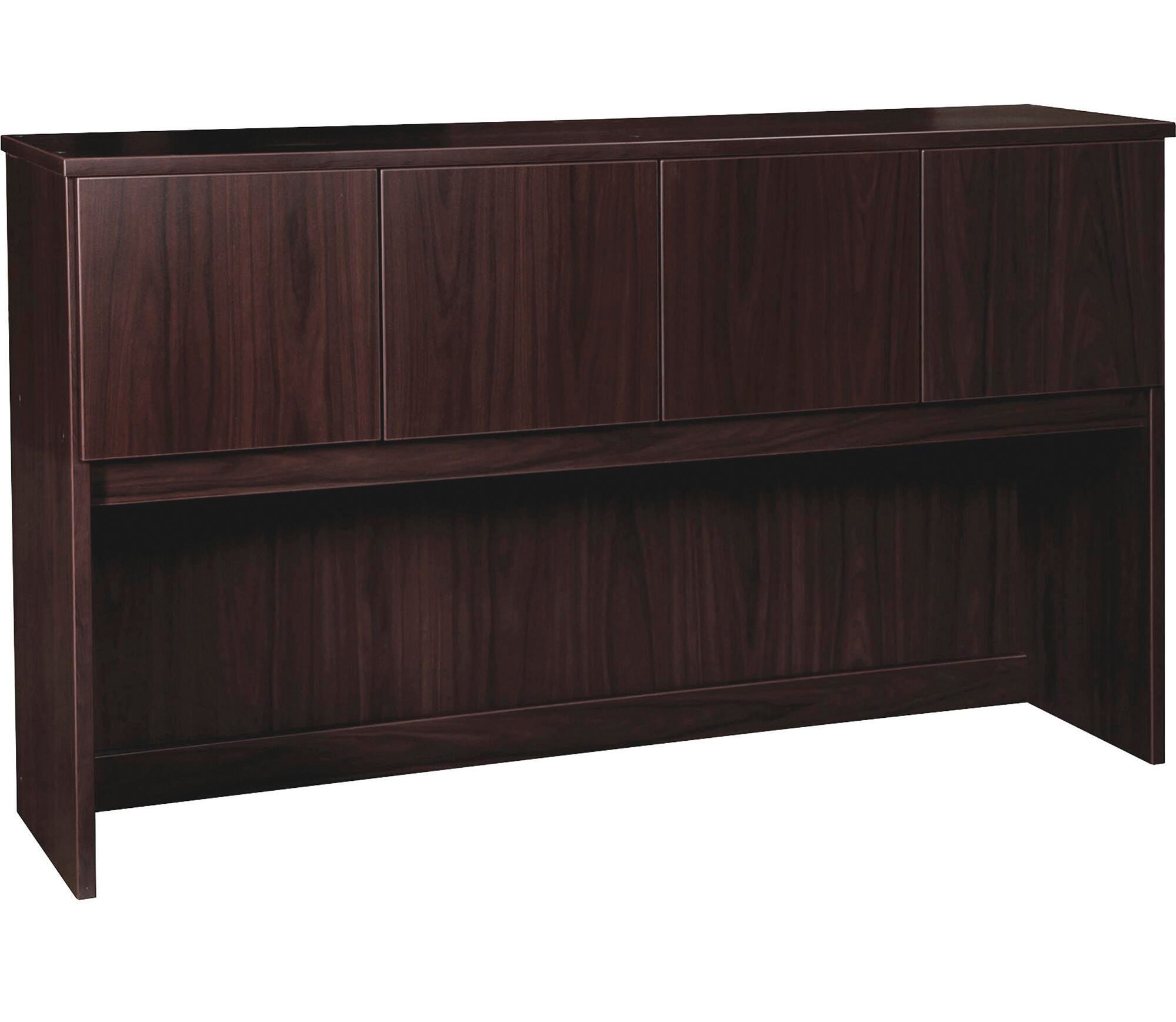 Hutch expands your storage area for your executive office suites. Durable, espresso laminate surface is mar-resistant, burn-resistant and impact-resistant to withstand hectic, daily work life. Hutch is made with 45-pound density particleboard and finished on both sides with high-performance, thermally fused melamine. Attach to 66-inch wide Prominence 2.0 desks or credenzas for convenient, space-saving storage that helps declutter your worksurface. Hutch includes a finished back and four doors to conceal your belongings in two compartments. Ships fully assembled.Includes: