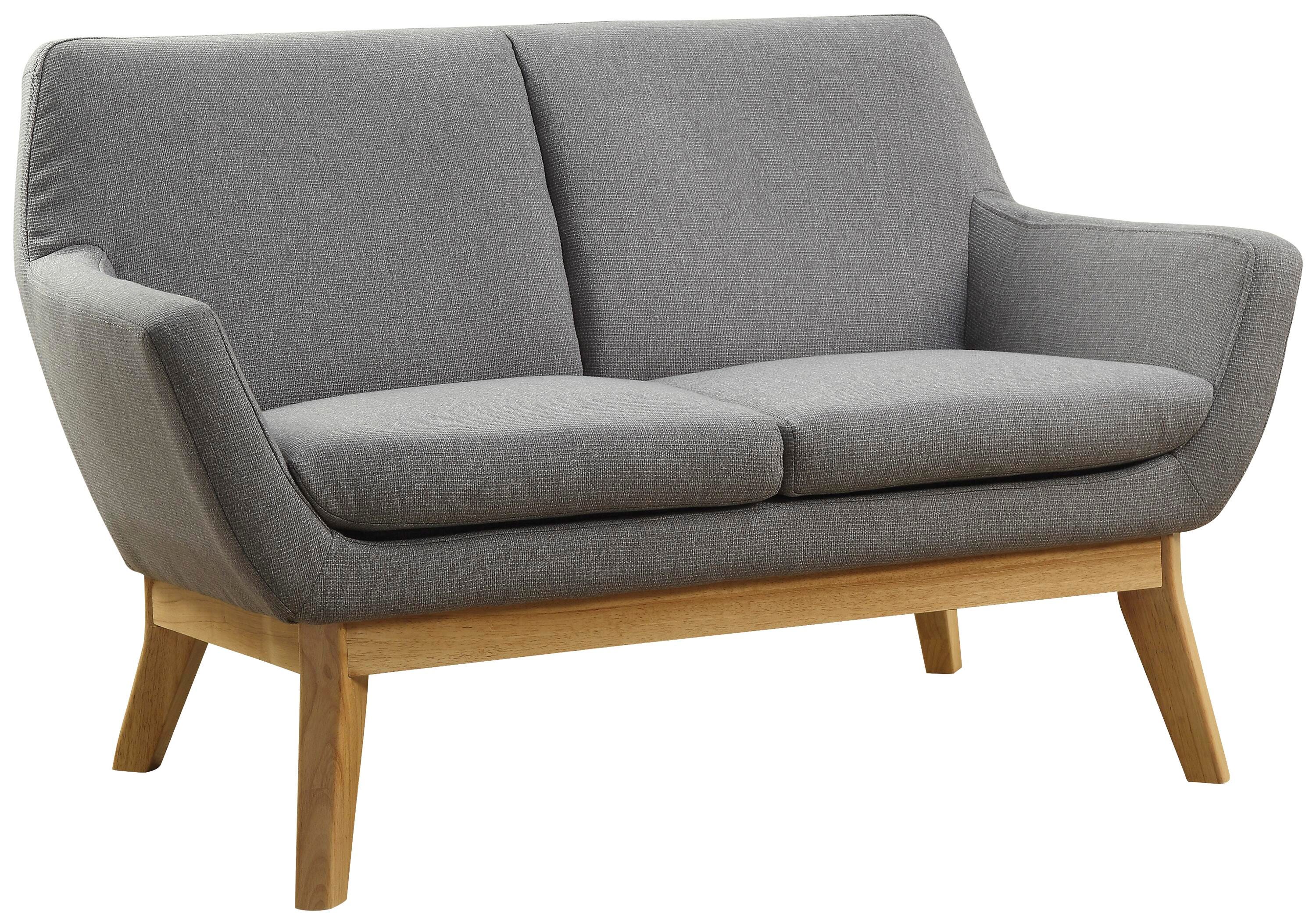 Upholstered loveseat features built-in lumbar support that offers ergonomic support for your lower back to help prevent strain through extended seating. Extra-padded seat and back cushion offer enhanced comfort. Natural wooden legs provide sturdy support while adding to its modern style. Cross bar underneath the seat increase its overall strength for lasting use.