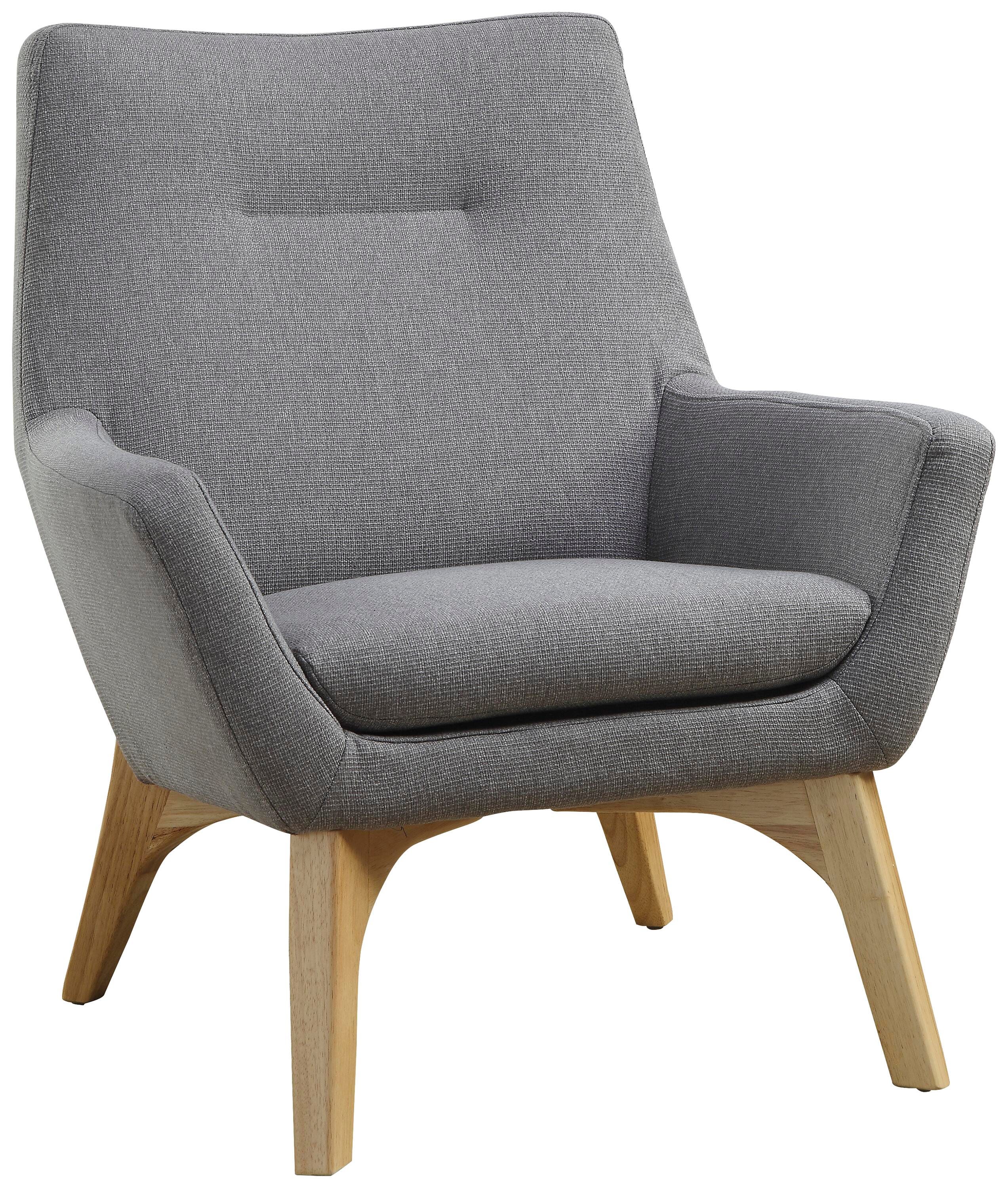 Upholstered lounge chair features built-in lumbar support that offers ergonomic support for your lower back to help prevent strain through extended seating. Extra-padded seat and back cushion offer enhanced comfort. Natural wooden legs provide sturdy support while adding to its modern style.