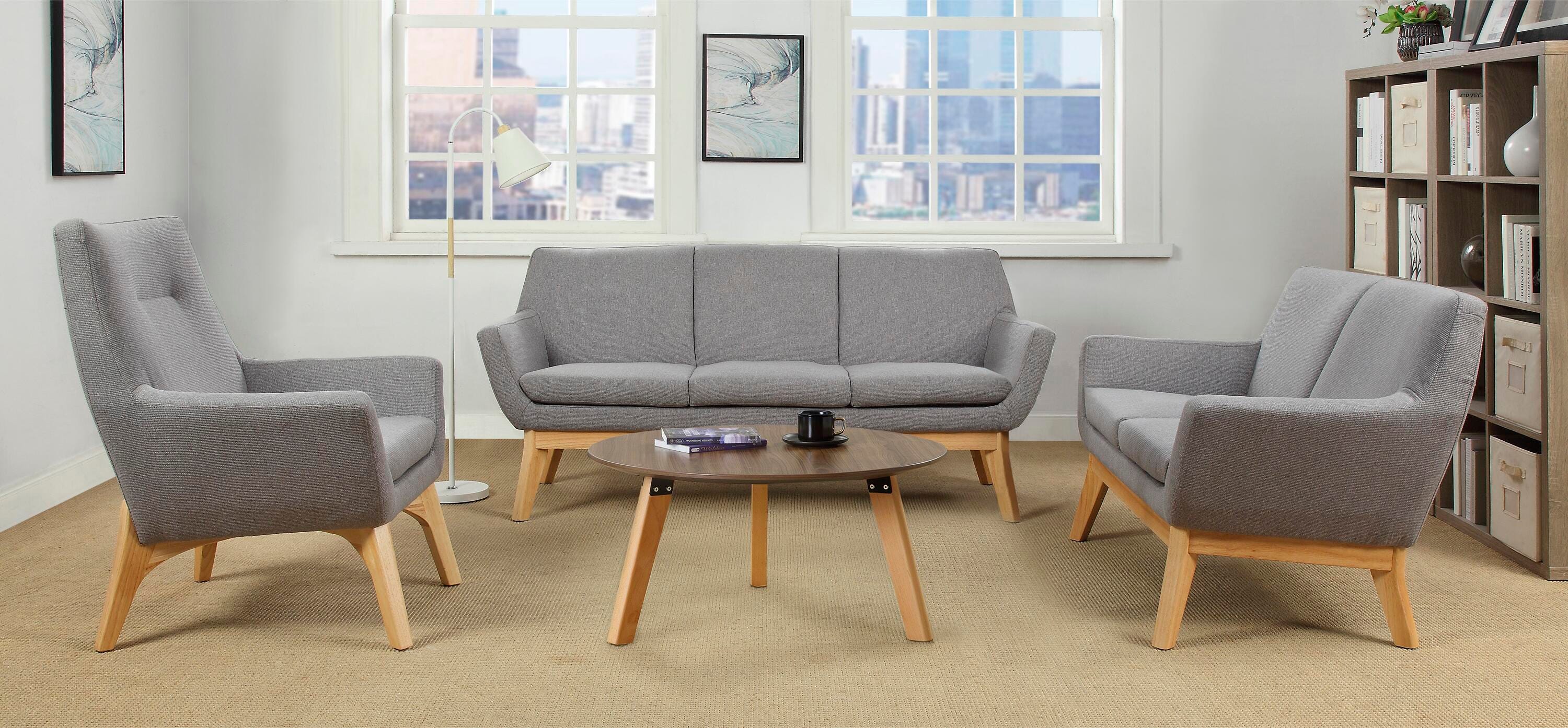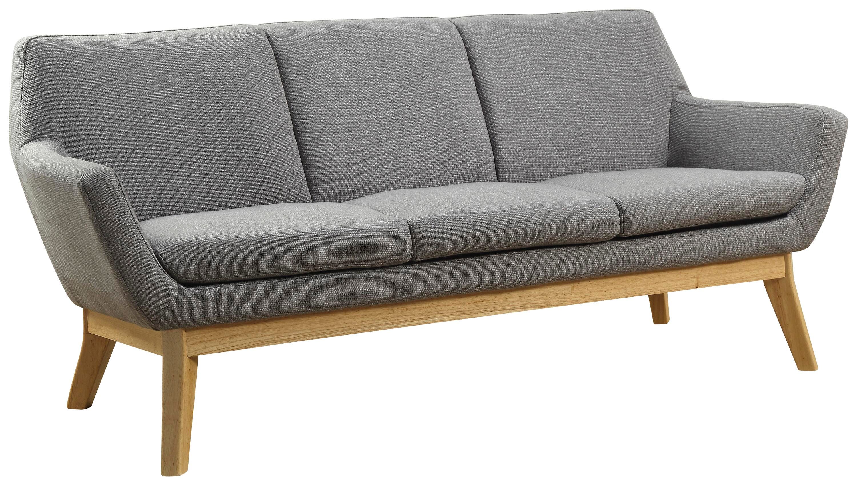 Upholstered sofa features built-in lumbar support that offers ergonomic support for your lower back to help prevent strain through extended seating. Extra-padded seat and back cushion offer enhanced comfort. Natural wooden legs provide sturdy support while adding to its modern style. Cross bar underneath the seat increase its overall strength for lasting use.