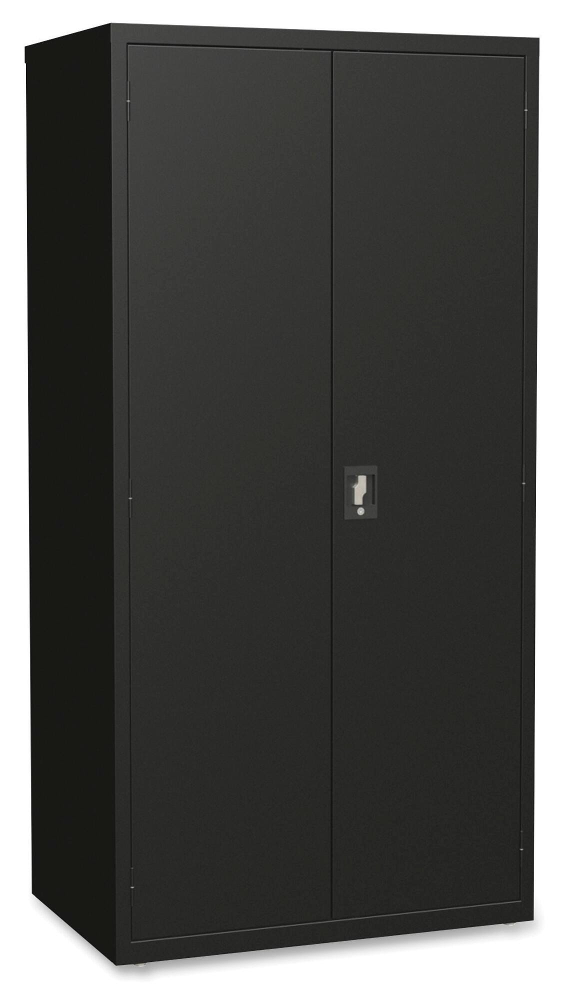 Storage cabinet with five shelves offers a sturdy, private storage space to keep material organized and secure. Lock up belongings using the recessed locking handle with the three point locking system and core removable lock. Durable cabinet is made of welded steel. Four shelves adjust in 1 inch increments to fit your storage needs. Each shelf holds 180 pounds. Steel construction has a powder coat finish to make it last longer. Cabinet features hinged doors for easy access and includes one key. It meets or exceeds ANSI, BIFMA standards.