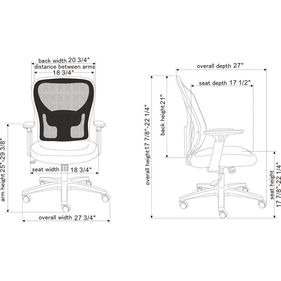 Task chair mid-back features a breathable mesh back, height-adjustable lumbar support and thickly cushioned seat with fabric upholstery for a comfortable seating experience. The sturdy arms adjust in height and feature soft padding made of polyurethane so you can sit back and relax. Customize the chair for the ideal position with comfort functions including pneumatic seat-height adjustment, tilt lock, adjustable tilt tension and 360-degree swivel. Nylon base is equipped with dual-wheel casters for easy chair movement. Weight capacity is 250 pounds. Measures 27-1/2 W x 28 D x 42 H inches.