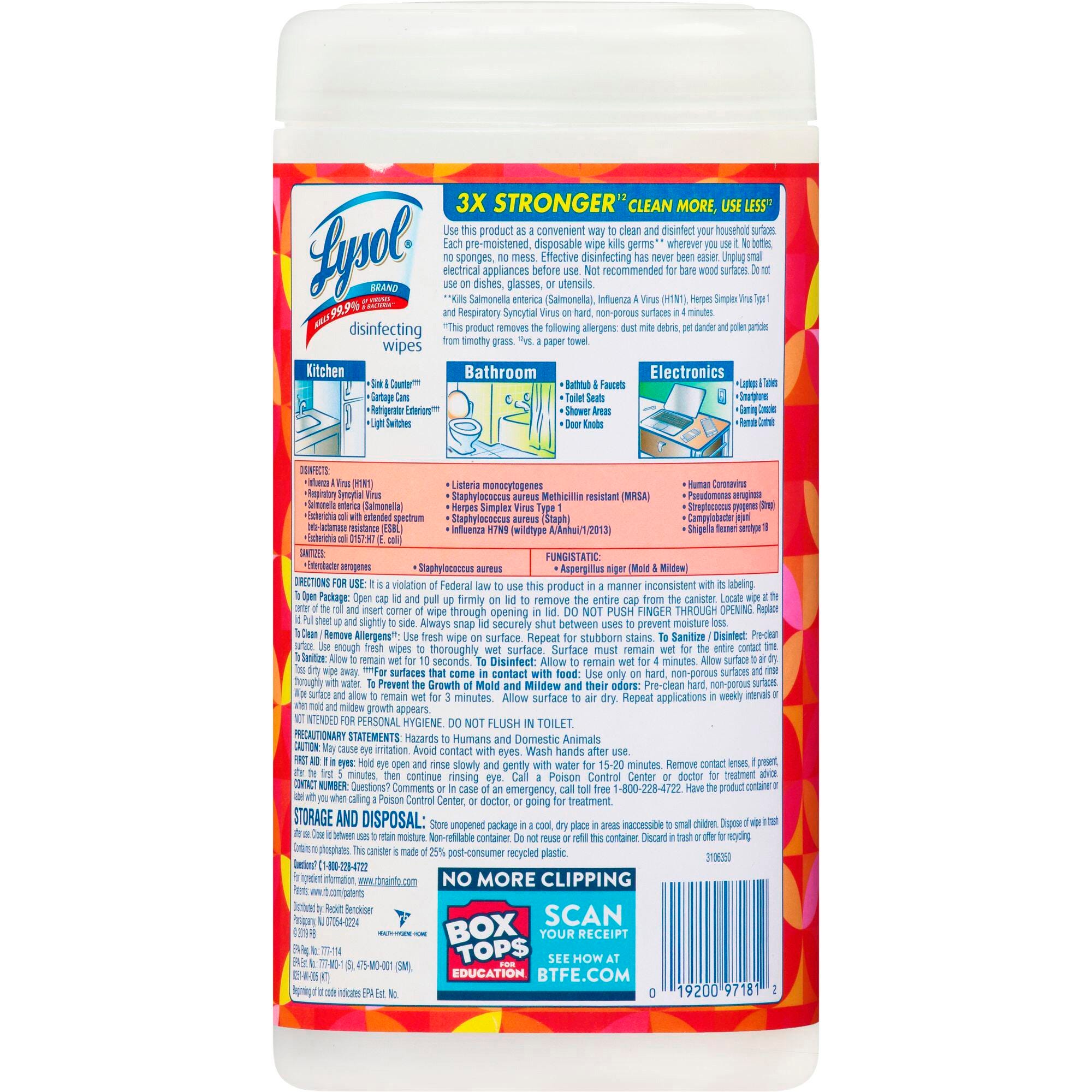 Tackle quick cleaning touch-ups and help stop the spread of germs with these disinfecting wipes in stylized packaging to redefine your cleaning experience. In addition to killing 99.9 percent of bacteria and viruses, the powerful formula also removes more than 95 percent of allergens, including pet dander, dust mites and pollen. Disinfecting wipes can be used on most hard, nonporous surfaces, such as kitchen counters, appliances, bathtubs, smartphones, remotes and more. Pre-moistened wipes come in a convenient pop-up canister for simple, immediate use. 80 Sheets. Brand New Day Scent.Features
