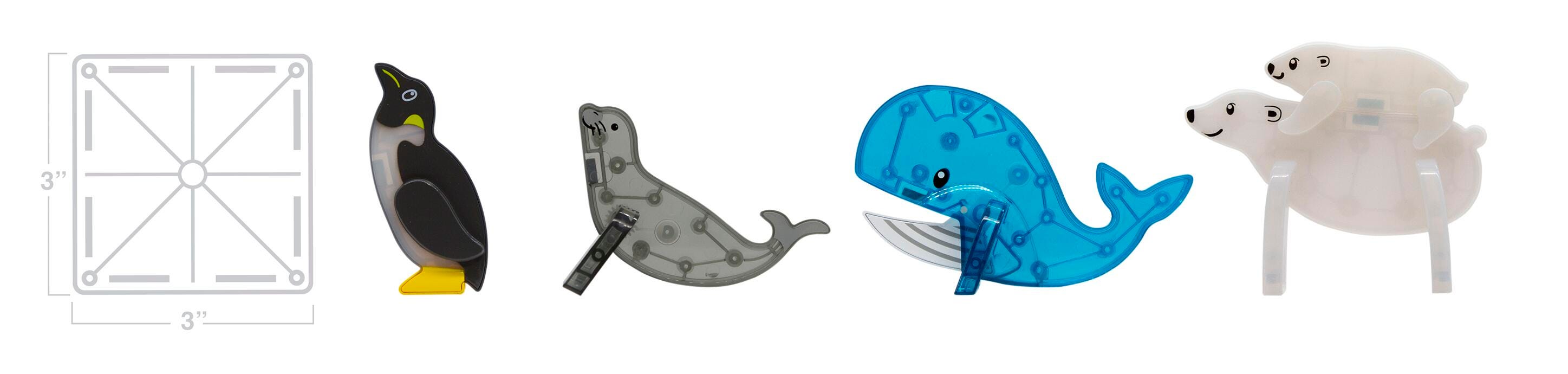The Arctic Animals set is a pop-polar choice for children to play, build, and pretend with five Arctic animal friends and their frozen habitat. You’re sure to have a whale-y good time as you slip, slide, and splash your way through icy mountains and glaciers.