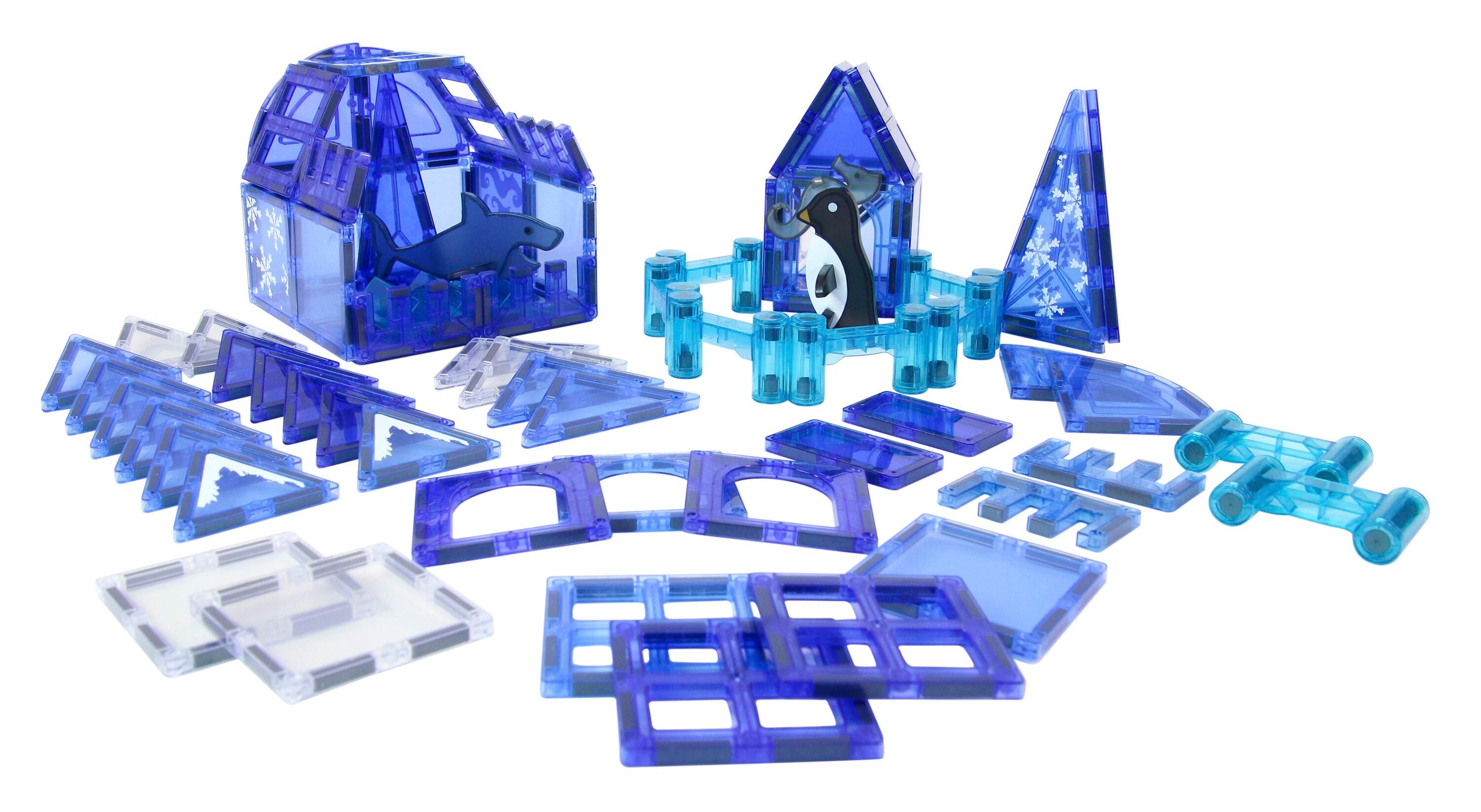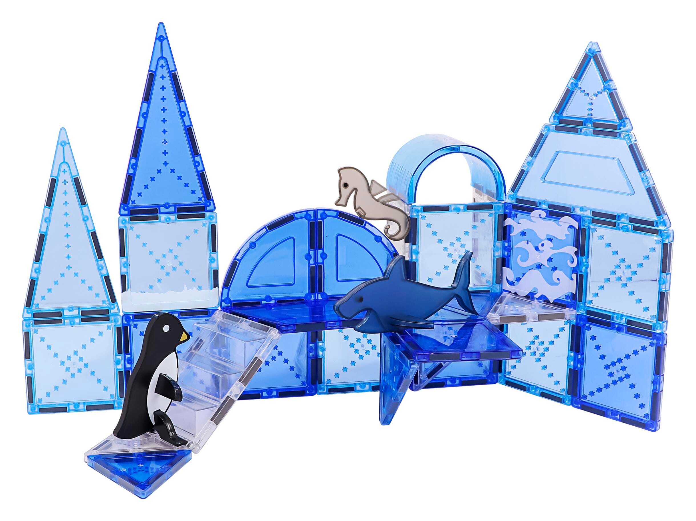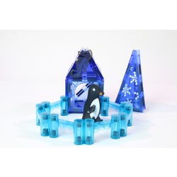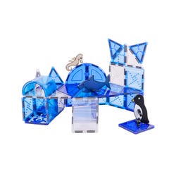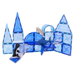 Explore the ocean and the Arctic with adorable animal friends and blue tiles to inspire both ocean and ice. Swim through the ocean with a shark or skate on ice with a fun penguin friend. This magnetic tile set encourages STEAM learning by discussing different ecosystems and encouraging building skills in young engineers. Perfect for spaces that need a fun, engaging, open play solution.Features