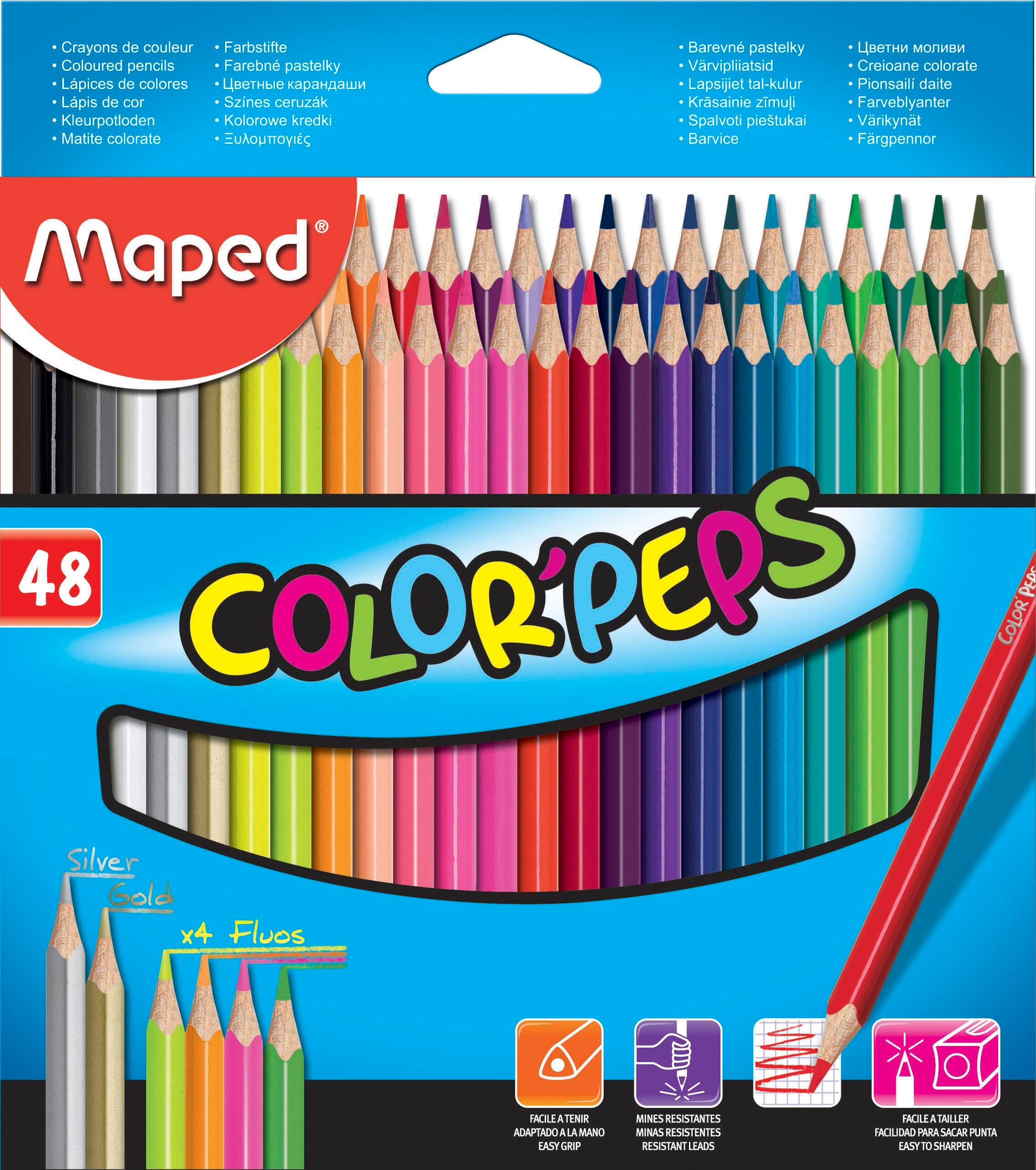 Maped Color'Peps Triangular Colored Pencils, Assorted Colors, Set of 48