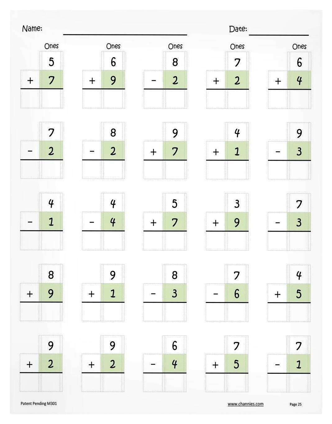 Remove the noises of lining up, focus on math repetition and calculation. Shorten the time spent on Math practice while improve the Math accuracy. Basic single-digit math can be difficult for some children when they are first introduced to it. Not only are the processes of addition and subtraction confusing in the beginning, but the organization of the numbers also can be difficult for a child. Channie’s One Page A Day workbooks are designed to teach your child how to develop consistent number writing skills. With 25 single digit math problems on each page, simply tear off one page a day and practice math with high accuracy! They also reduce your child’s stress by helping them line up numbers neatly to increase calculation accuracy. It is a great way to organize their math practices and improve their math problem solving capabilities. Includes 25 pages printed front and back (50 working sheets). Appropriate for grades Prek-1.