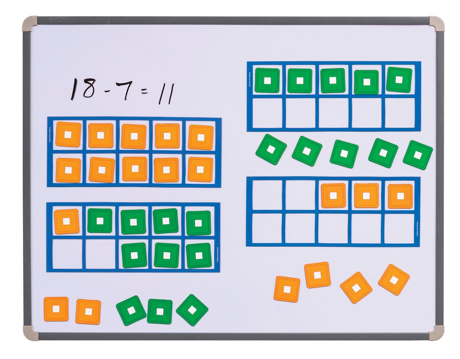 Didax Unifix Magnetic Ten-Frame is designed for grade K - 2 while great for modeling operation skills like addition or subtraction as a group. It is ideal to practice using your whiteboard with these large magnetic ten-frames. Set includes four 12 in x 5 in frames, 20 Unifix magnets in two colors and teaching notes with CCSS alignment.
