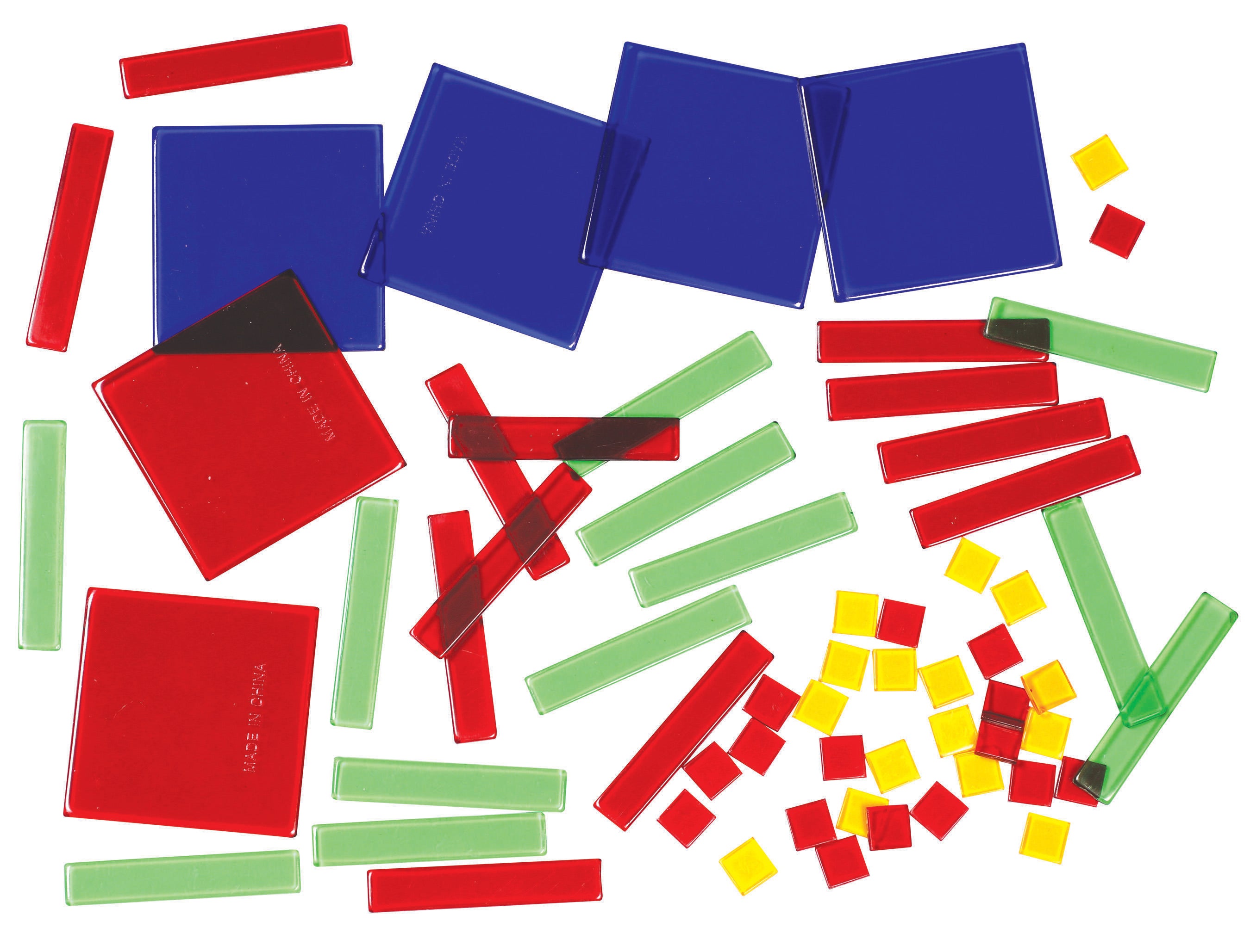These handy Algebra Tiles help students visualize abstract concepts and polynomials. This set includes a transparent set that is great for demonstrations and practice on the overhead projector.