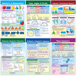 The Geometry Bulletin Board Chart Set includes the following 6 double-sided, laminated charts: