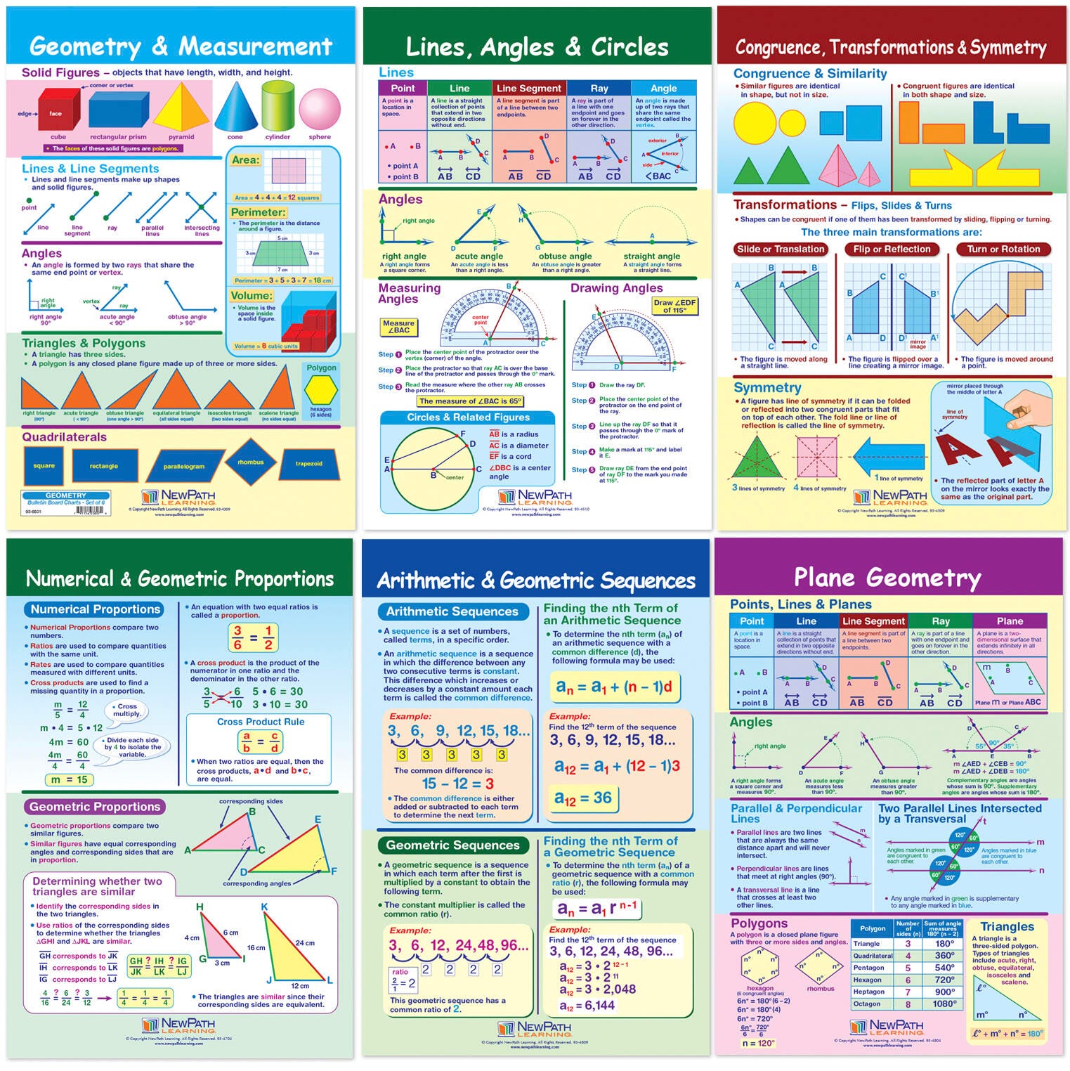 NewPath Learning Geometry Bulletin Board Charts, Grades 6 to 8, Set of 6
