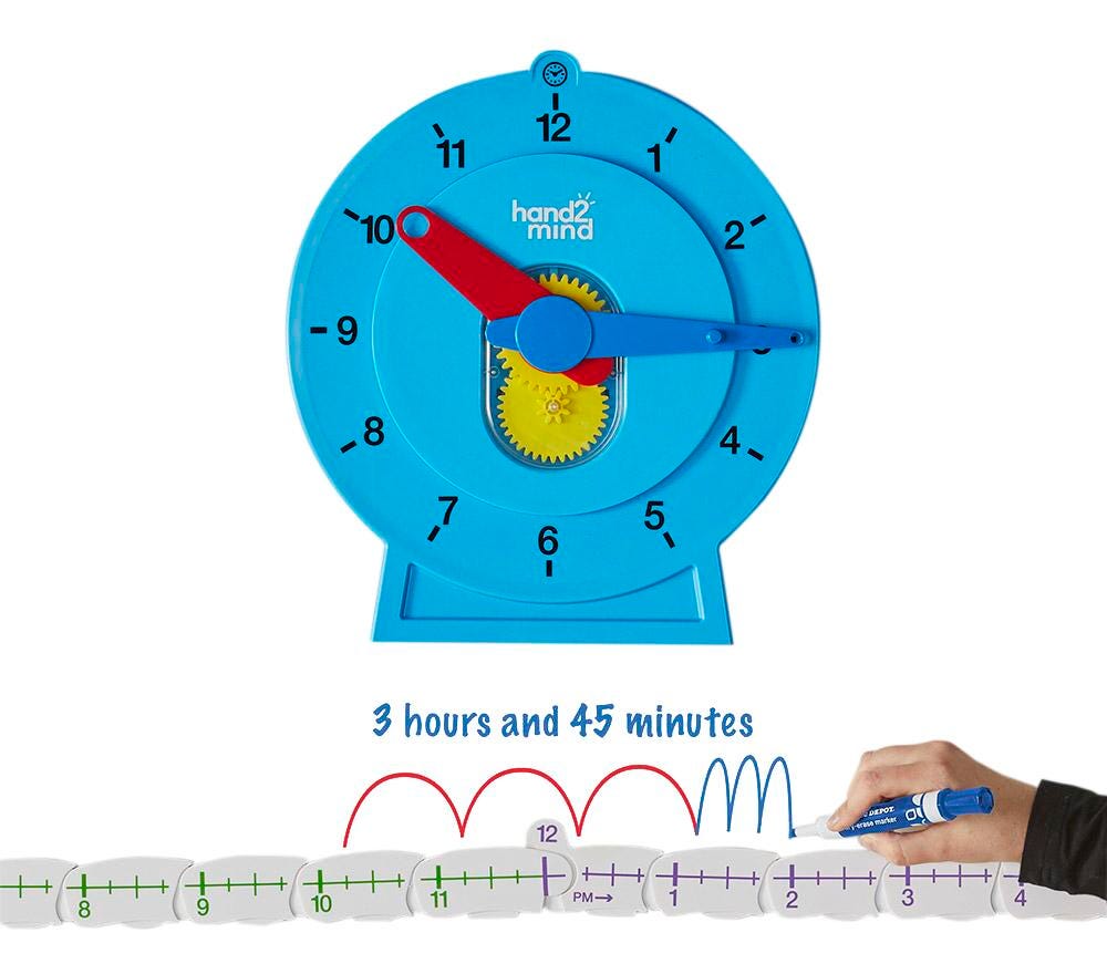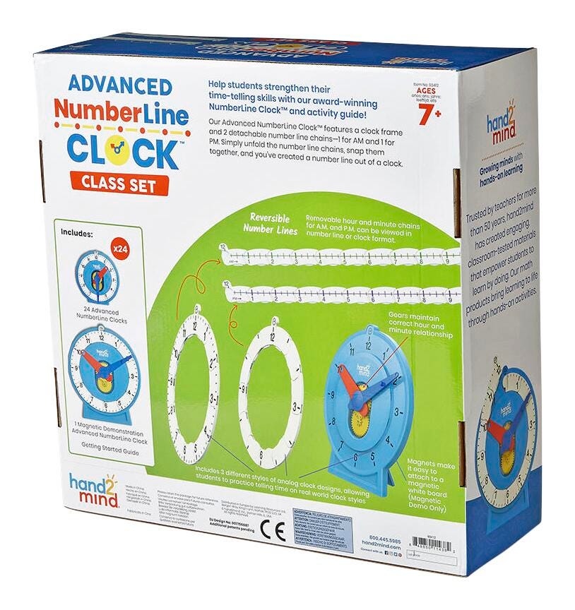 Hand2Mind Advanced Numberline Clock Classroom Set, Grades 2 to 8