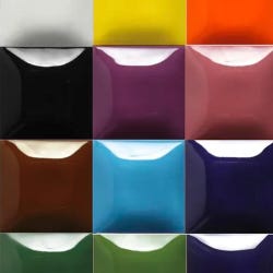 The Stroke & Coat® Glaze set from Mayco delivers a highly versatile, high-quality glaze for a range of products. The opaque glazes come in 1-pint bottles, can be applied to wet clay or bisqueware, and can be fired from Cone 06 to Cone 10. It requires no thinning and can be used right from the jar. The glaze colors stay true from application to fired finish and can be intermixed for variety. Apply one coat on clay or bisque for a graceful, translucent finish or a majolica technique. It can also be used up to 3 coats for rich, opaque coverage. Use this versatile glaze for full coverage, design work, and many other decorative techniques. This set includes 1 pint of each of the following colors: Blue Yonder, Moody Blue, Irish Luck, Green Thumb, Sun Kissed, Orange-A-Peel, Rosey Posey, Grape, Hot Tamale, Java Bean, Cotton Tail, and Tuxedo.Features