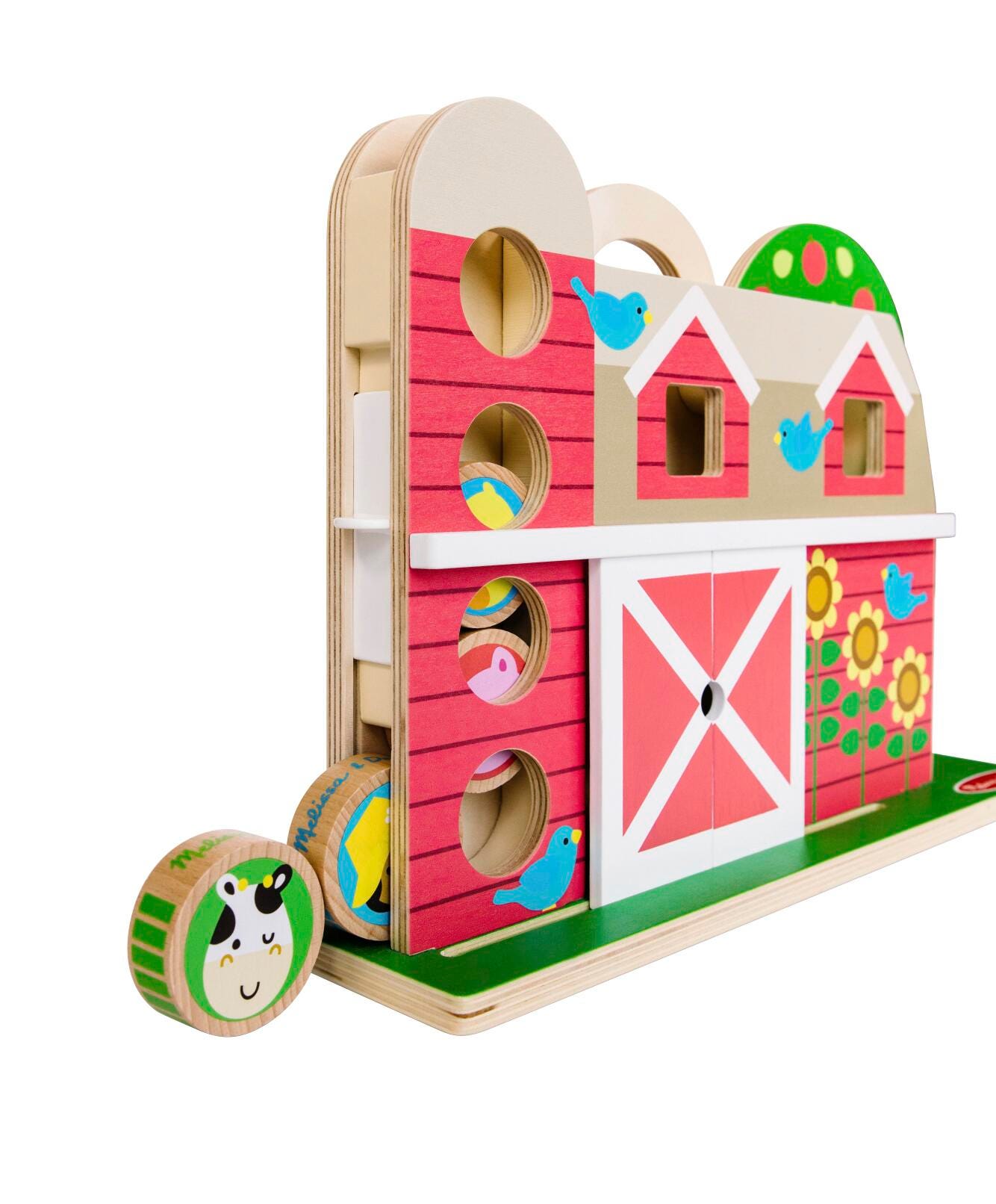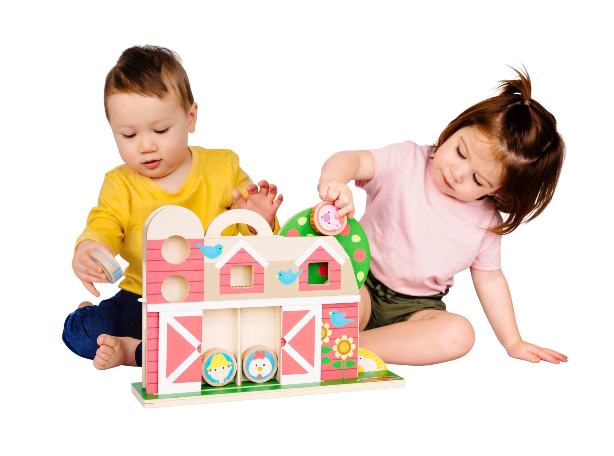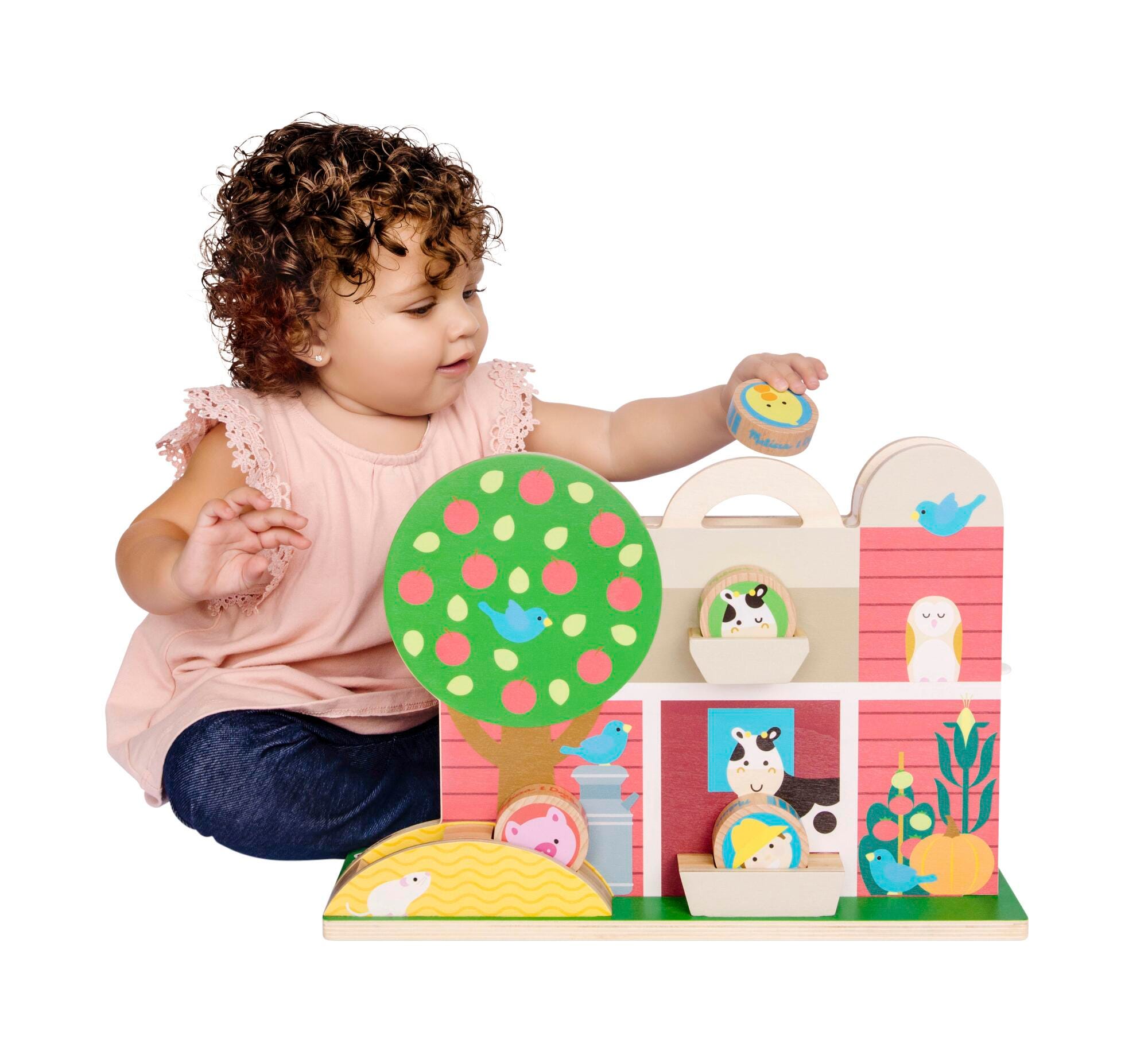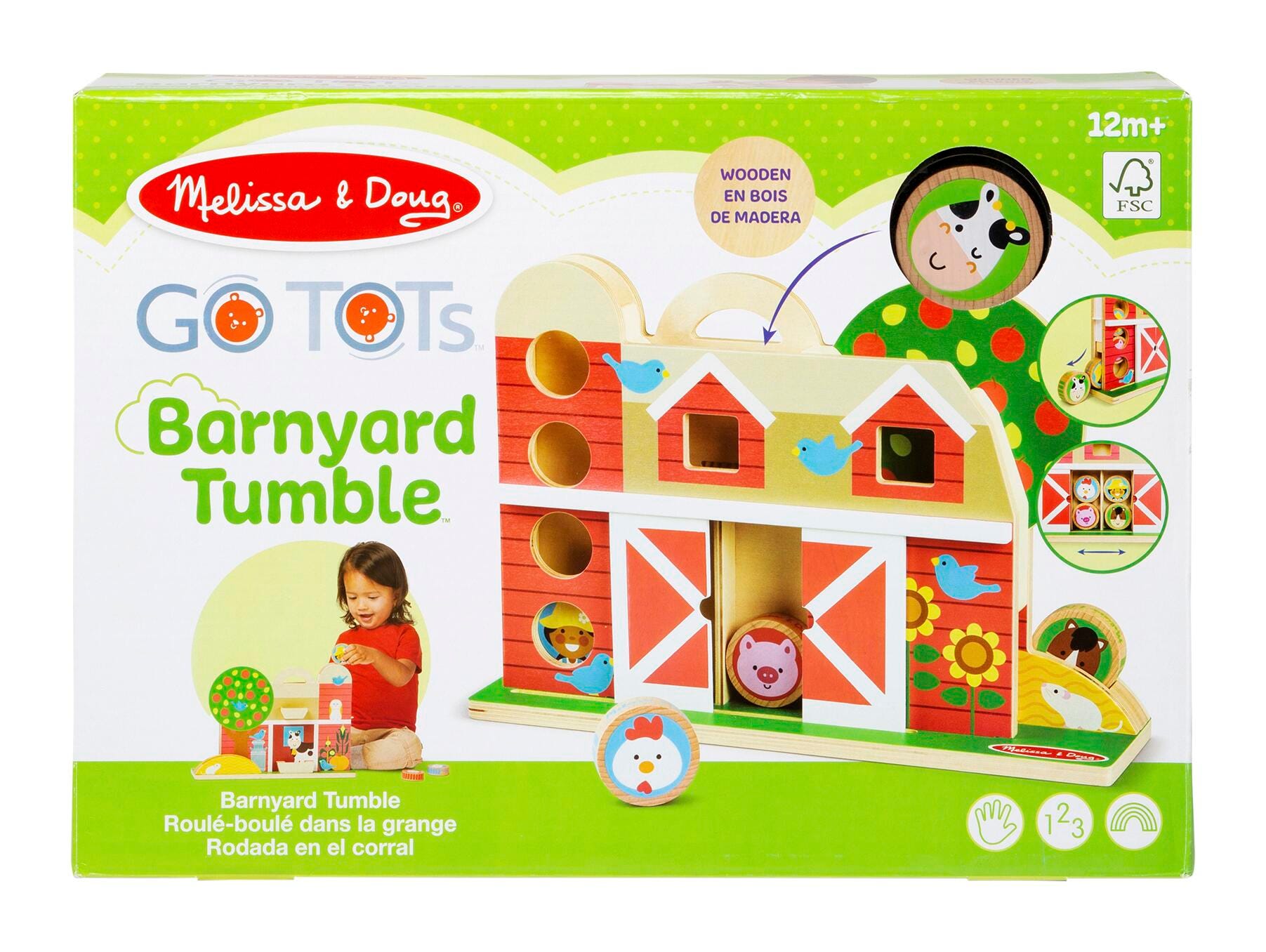 Four double-sided chunky wooden GO Tots disks (8 collectible characters—six animals and two farmers) tumble and twirl down the silo, out the barn door, over the haystack, and into the trough. Compatible with other GO Tots play sets. With Melissa & Doug GO Tots, toddlers 12 months and older will discover a new kind of kinetic play that offers opportunities to explore cause and effect through delightful motion-driven moments. Relatable, diverse characters and appealing shapes and textures encourage connections and exploratory, skill-building play.