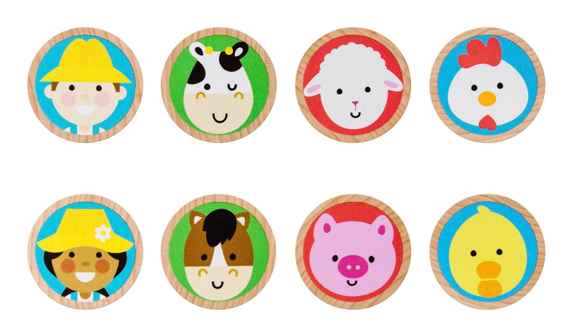 4 Collectible Double-sided GO Tots Disks (8 Characters; 6 Animals and 2 Farmers)