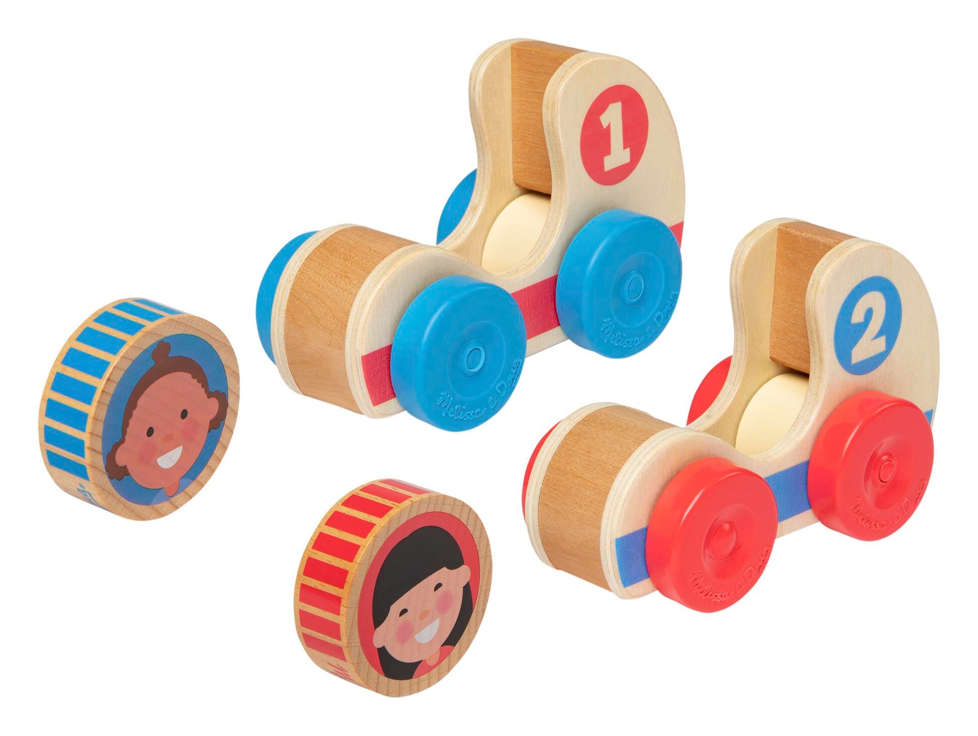 Drop the two double-sided chunky wooden GO Tots disks (4 collectible characters) into the numbered wooden race cars, and push the cars to make the GO Tots spin! Numbers and colors on the cars inspire counting, sorting, matching, and color recognition games. With Melissa & Doug GO Tots, toddlers 12 months and older will discover a new kind of kinetic play that offers opportunities to explore cause and effect through delightful motion-driven moments.