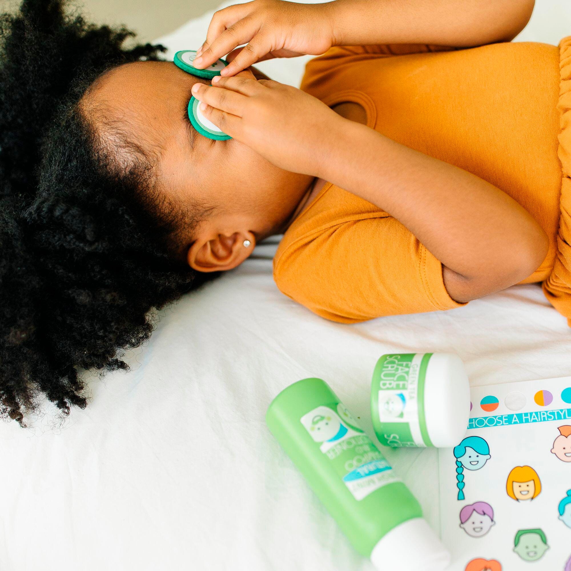 This exciting hair salon playset features a shampoo bottle (which does not contain shampoo), play scissors, a brush, a comb, and a hairdryer that really blows air! Pamper customers with salon essentials like pretend facial scrub (squishy insert feels real but does not contain actual product) and fun felt cucumber eye pads. Don't forget to clean up between customers with the dustpan and dust brush! Enhance imaginative play with a waiting room magazine and activity cards to choose services and hairstyles.Features