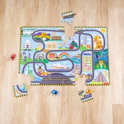 Piece together playtime with this Melissa and Doug global racetrack puzzle with built-in tracks for wind-up vehicles!
