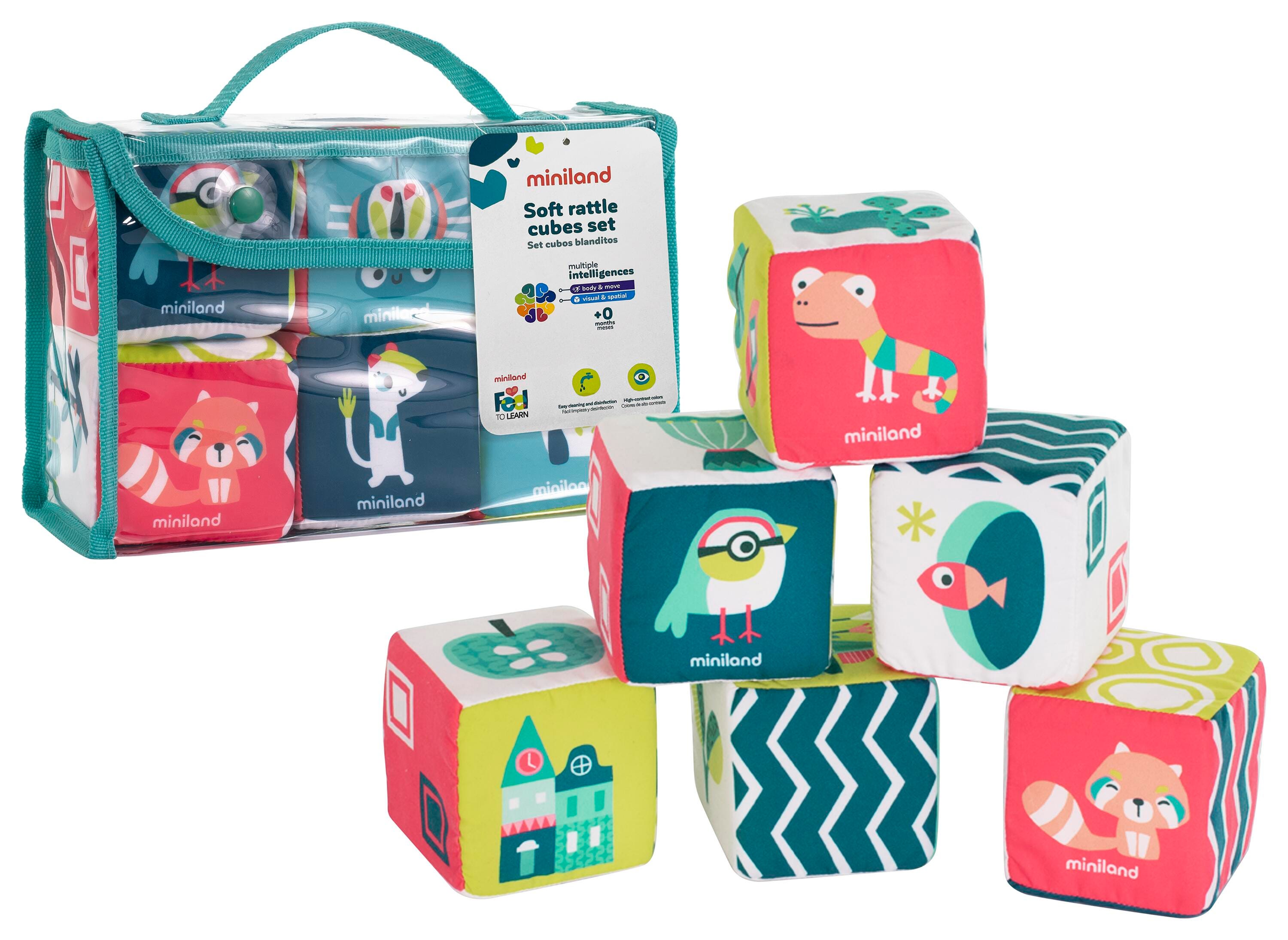Miniland Feel to Learn Soft Rattle Cubes, Set of 6