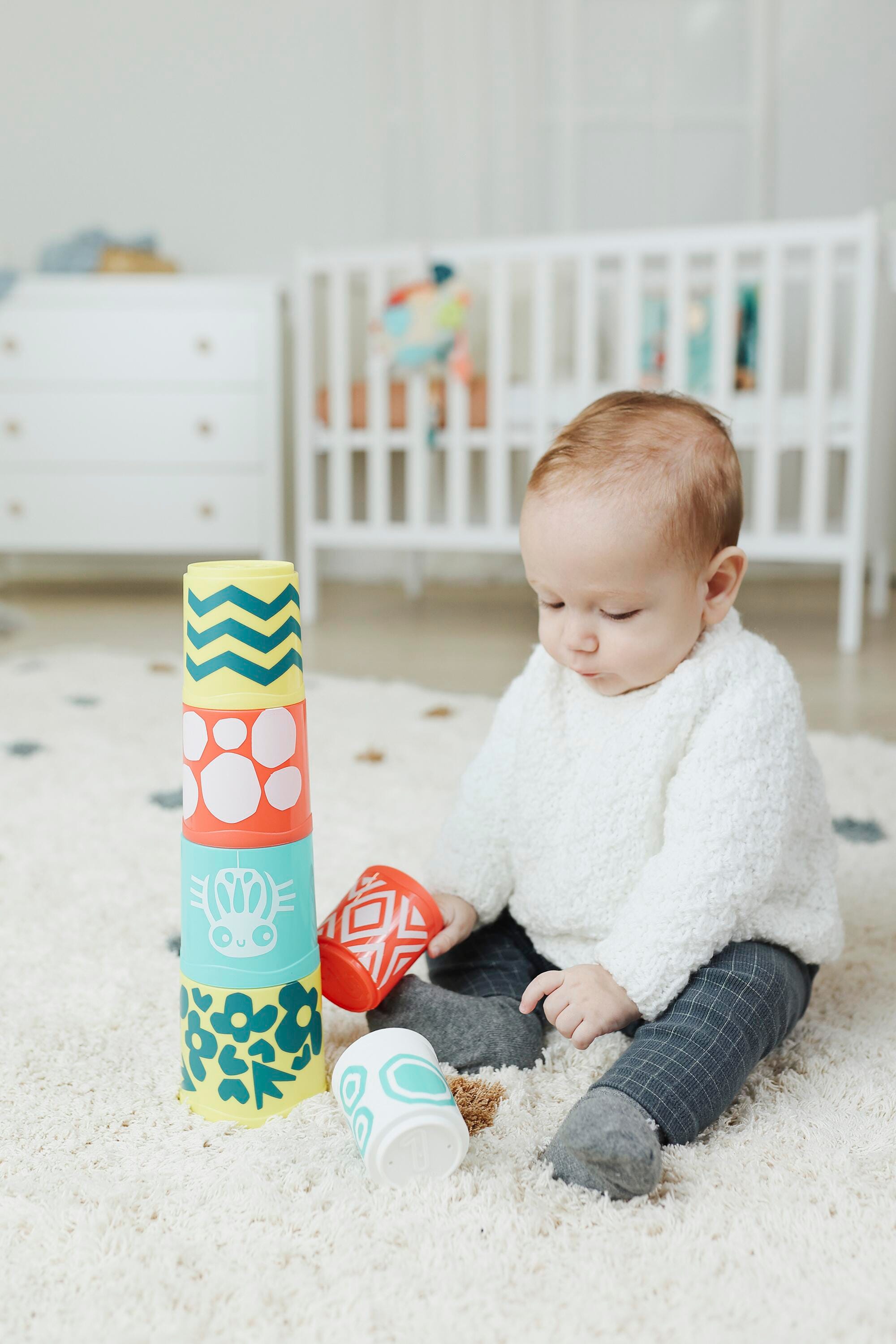 These fun stackable cups promote visual stimulation, attention, and visual perception through high-contrast colors designed for developing eyes. They also help to exercise eye-hand coordination and logical reasoning through fun stacking and sorting self-play. And, of course, through knocking them down once playtime is done. The Miniland Feel to Learn Collection is created to meet the key developmental milestones from infant to 3 years through play and self-discovery. These stacking cups are made for young ones from 9 months to 2 years.Features