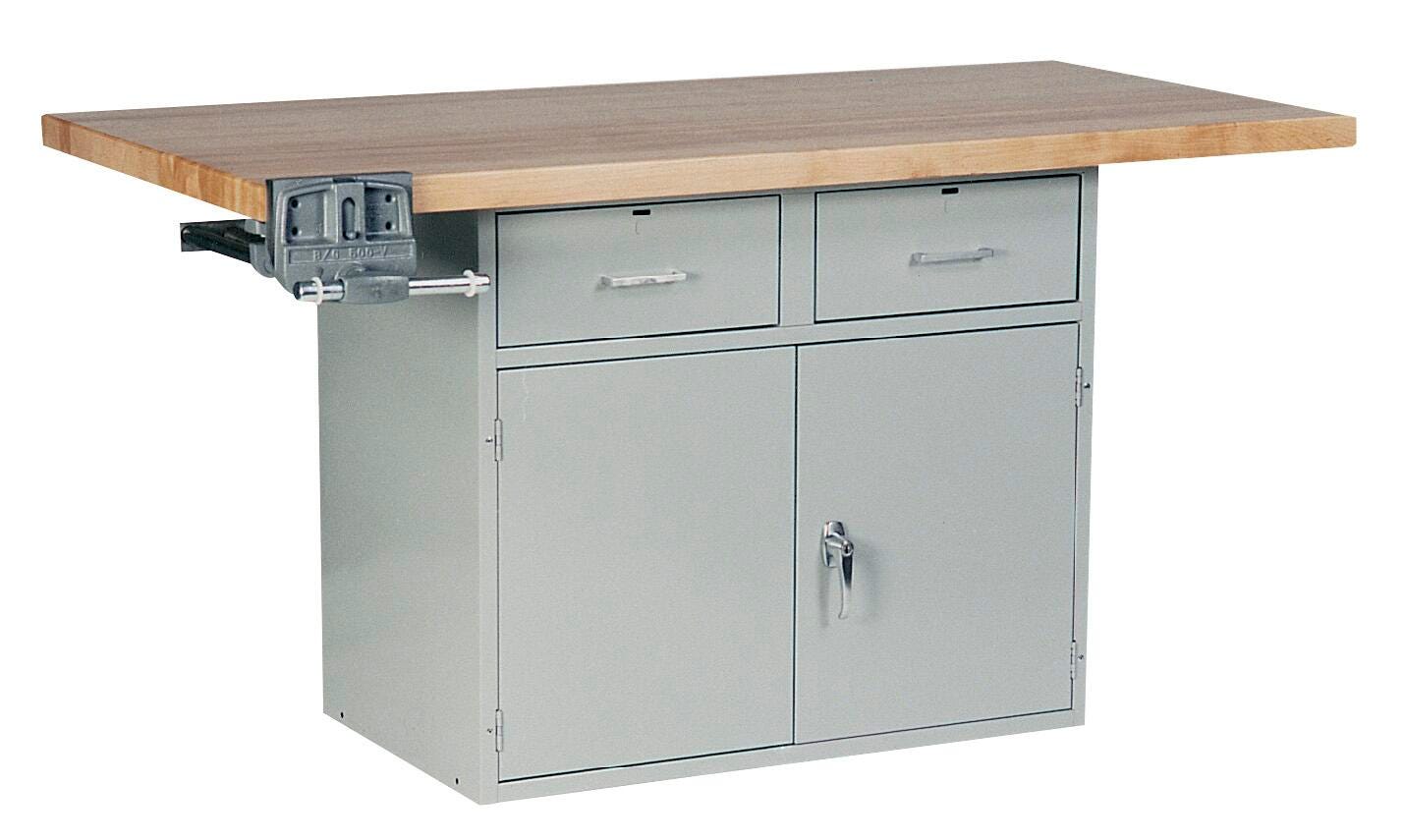 Steel base workbench with hard maple work surface is ideal for educational environments.