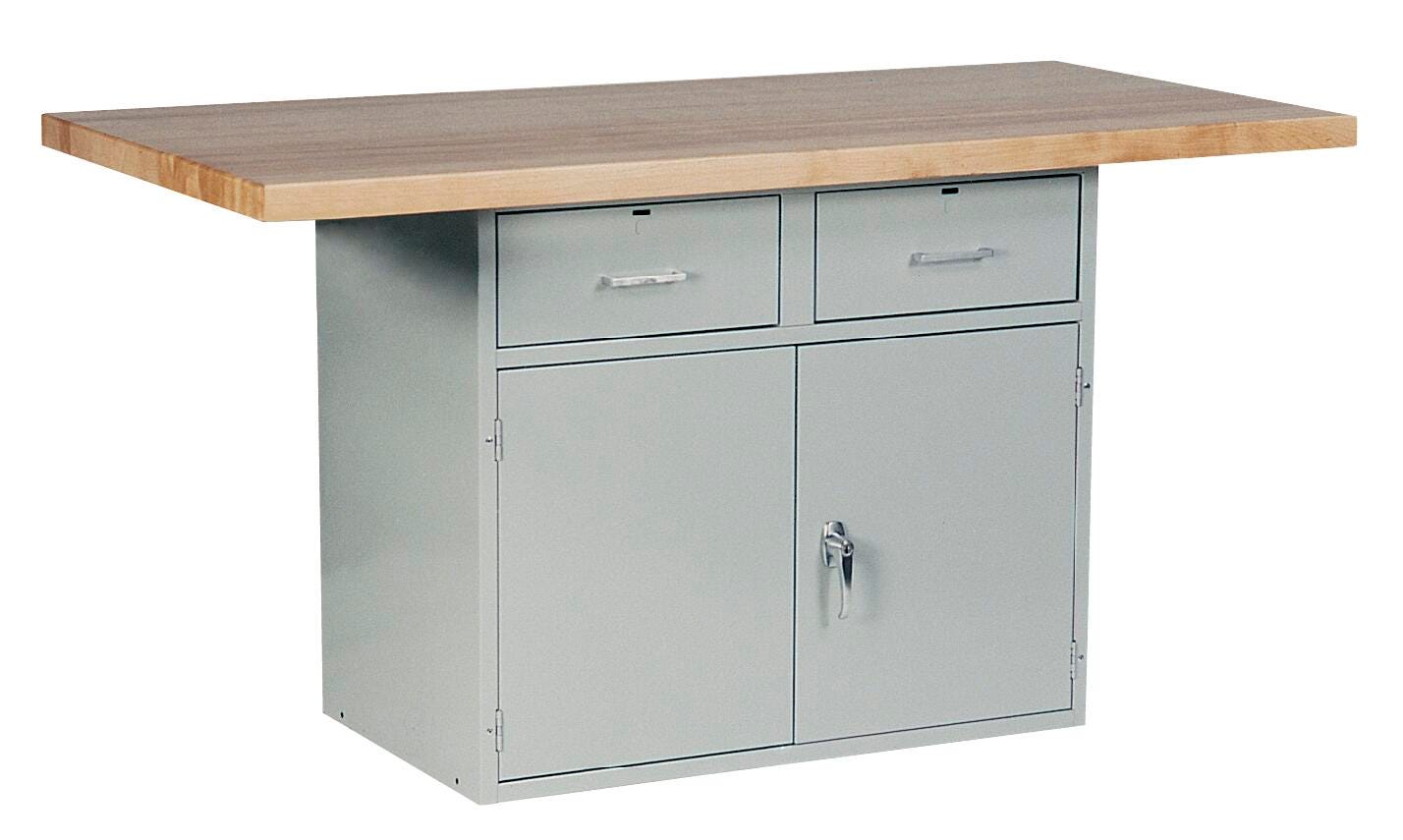 Steel base workbench with hard maple work surface is ideal for educational environments.