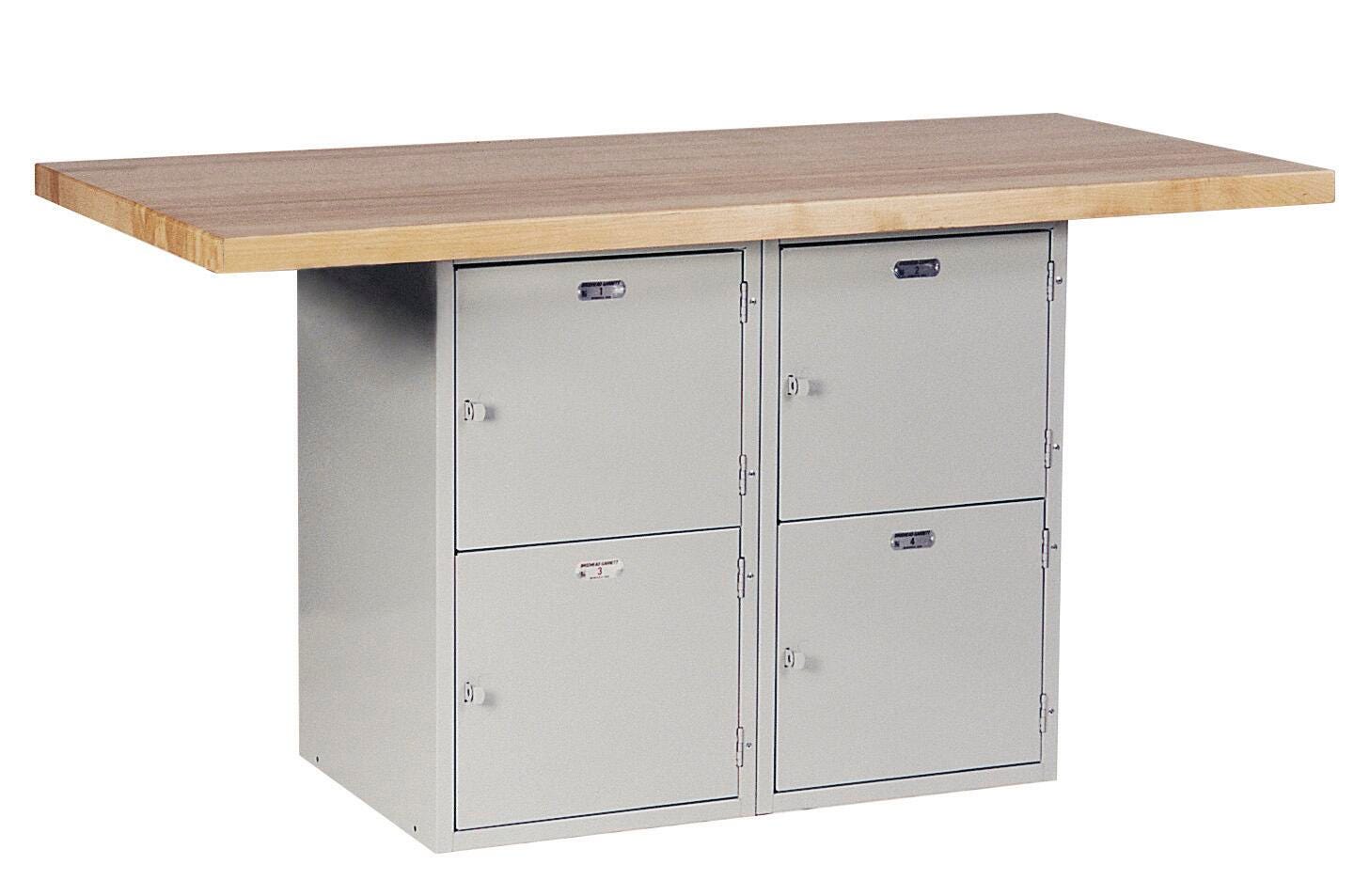 Steel base workbench with hard maple work surface is ideal for educational environments.