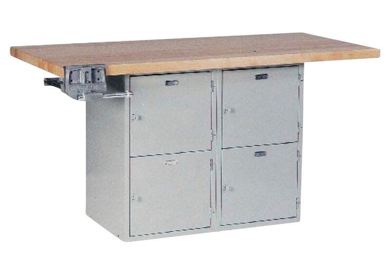 Steel base workbench with hard maple work surface is ideal for educational environments.
