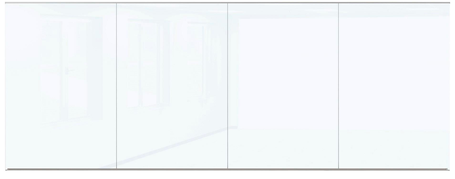 Create an aesthetic yet functional collaboration wall with the MooreCo Office Glass Wall Panel. Built with Fluent style, this whiteboard is engineered to incorporate the best qualities of magnetic glass markerboards with a modular full-wall whiteboard ensemble. Tempered safety glass is suited for use in any environment. Steel-backed glass accepts rare earth magnets. The office series features slim and modern anodized aluminum trim along the top edge, and a full-length anodized aluminum accessory tray along the bottom for storing markers and erasers. Fifty-year limited warranty. Has achieved Greenguard Gold certification. The MooreCo glass boards only accept rare earth magnets. Measures 8 x 20 feet.Features