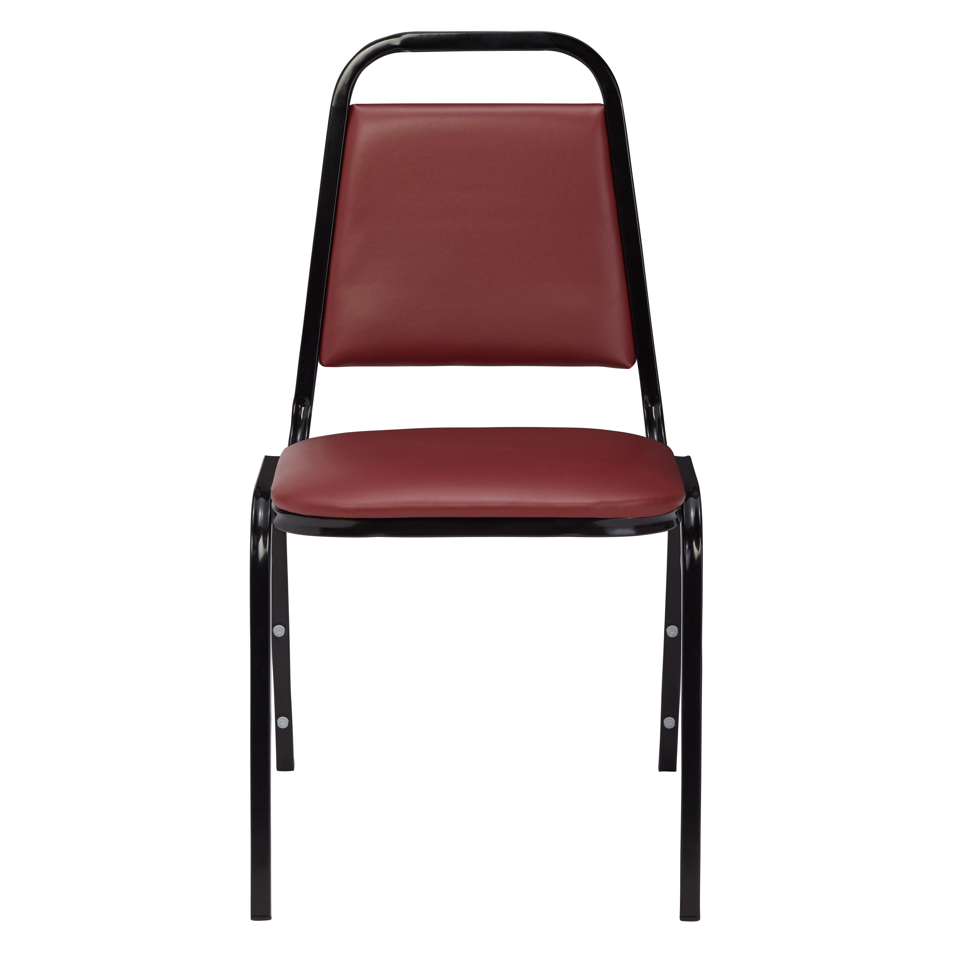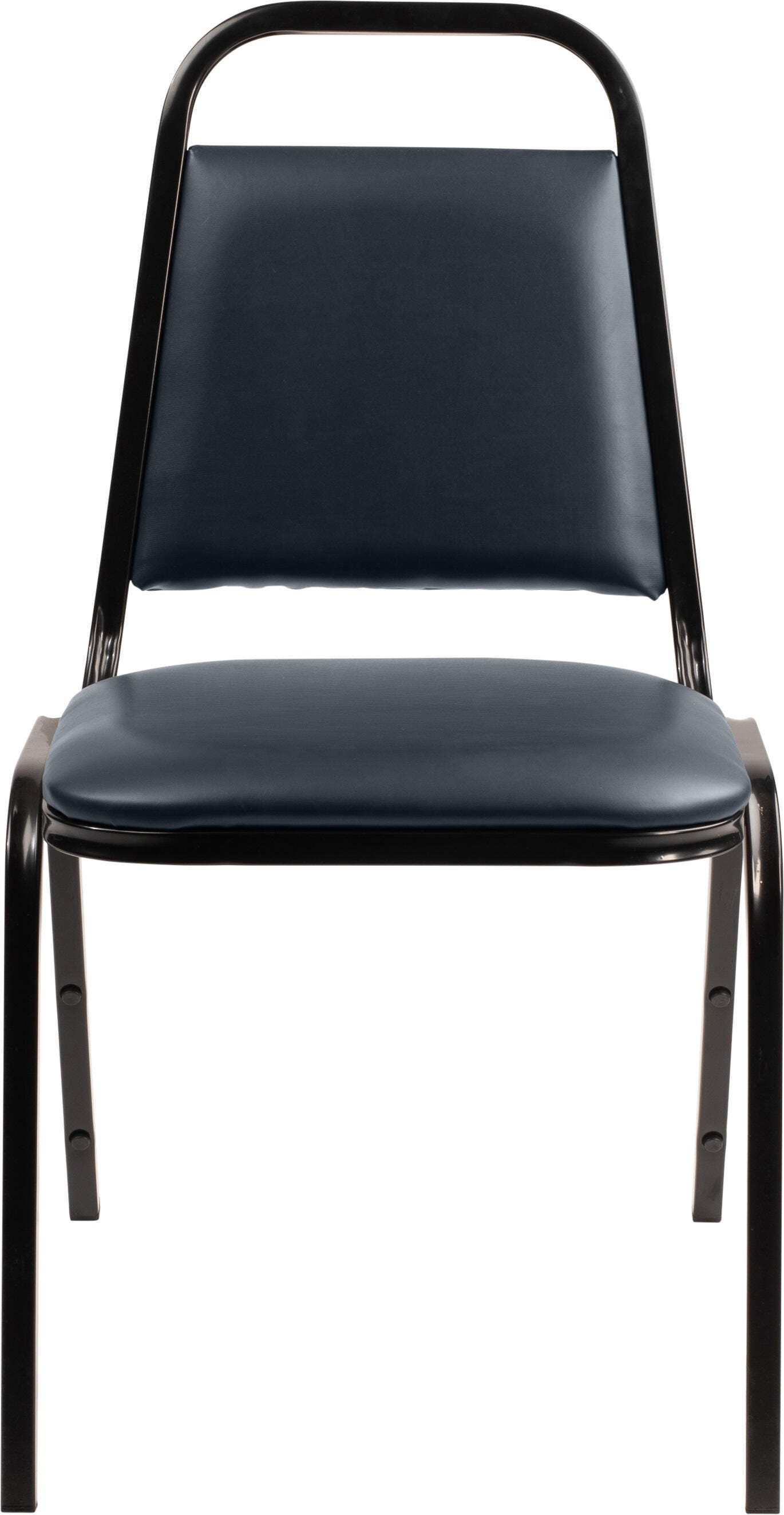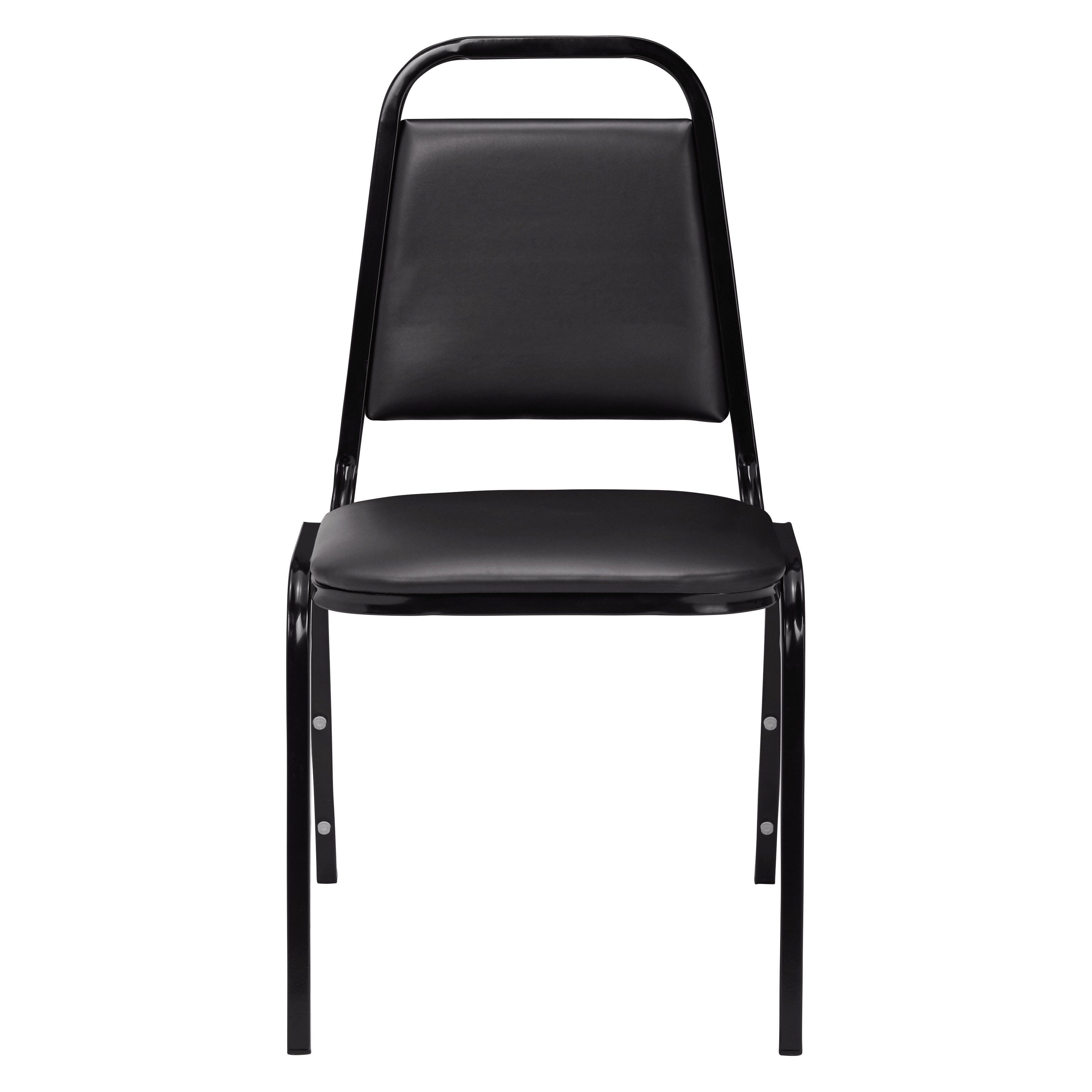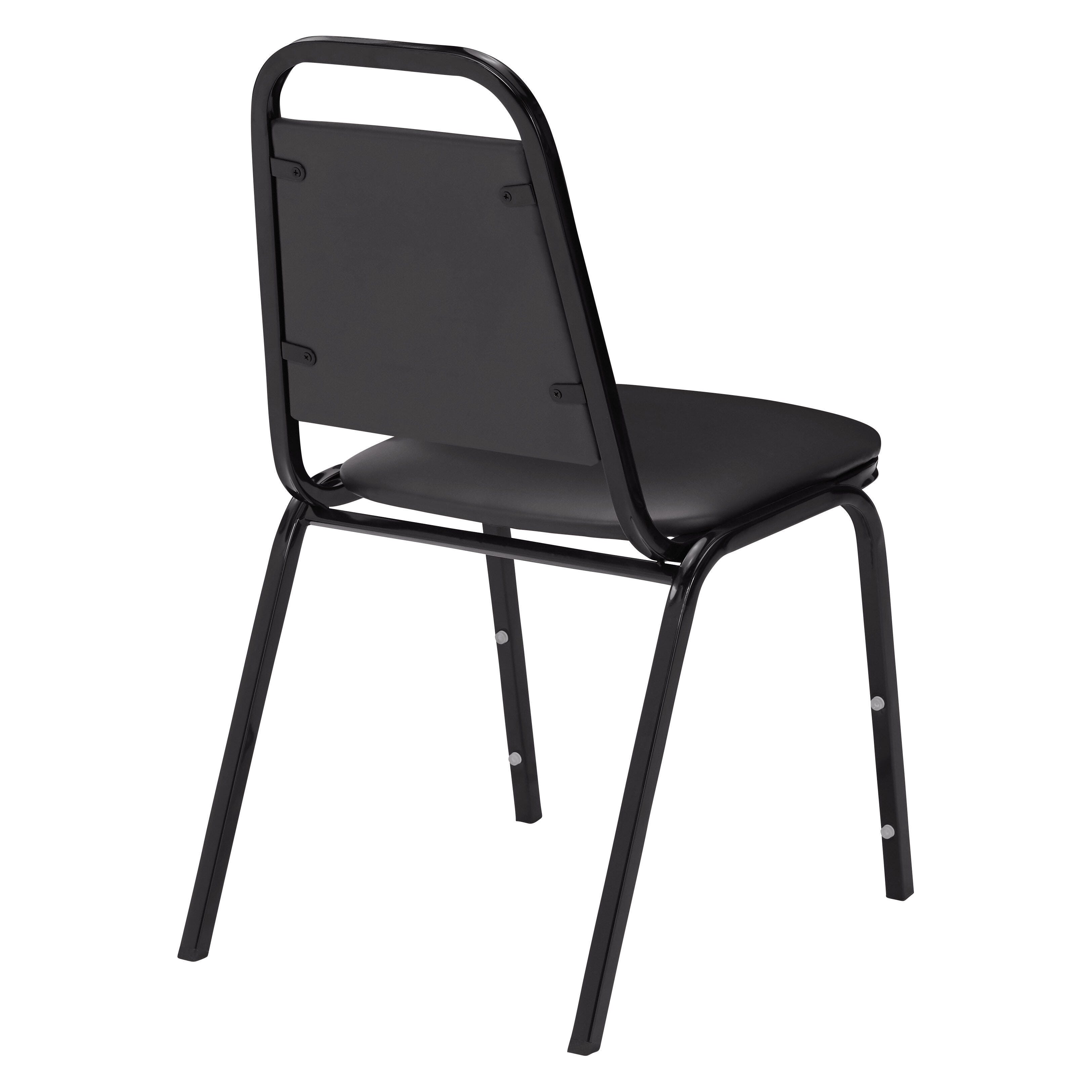 The 9100 Series Standard Stack Chair by National Public Seating features a sturdy 3/4-inch square frame 19 gauge steel tubing with non-marring plastic glides to support a crowd without scuffing your floors. It has a tapered back and a built-in handhold support for durable comfort that can easily stack away when not in use. Eight plastic stack bumpers protect the powder-coated frame finish when stored. The seat and back have a plywood core. The seat is cushioned with 1-1/2 inches of high-density Grade A foam and covered with vinyl. Can be stacked 8 to 10 high on a dolly. Seat height measures 18 inches. Designed with a black frame. Available in several seat colors to best match your space.Features
